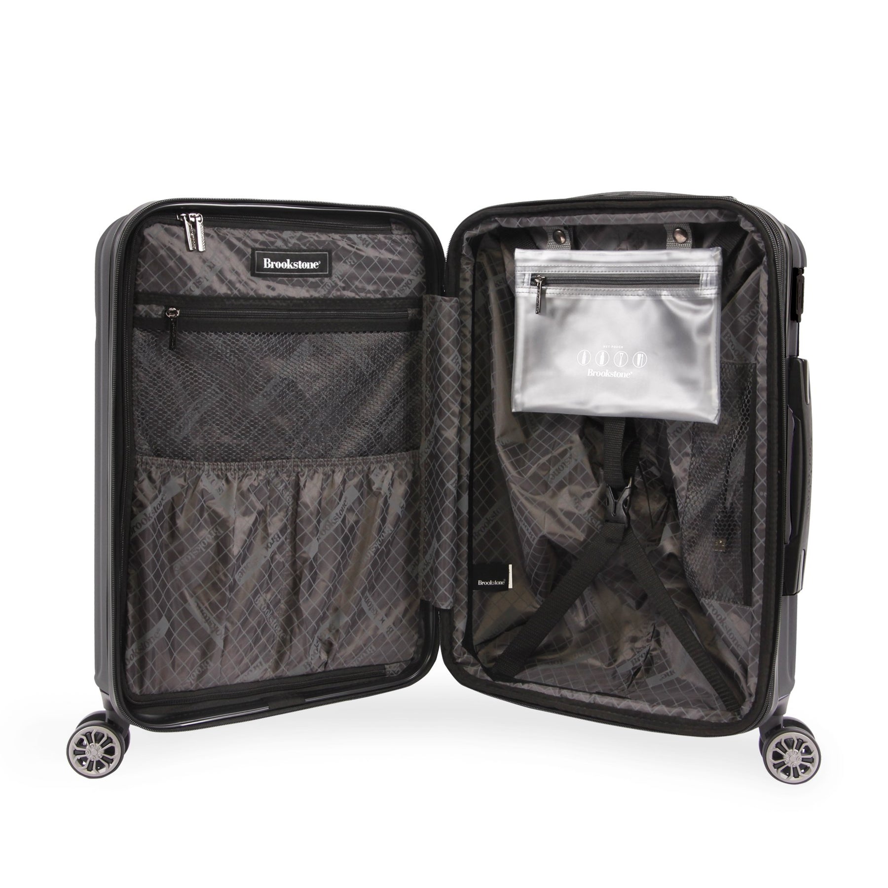 Travel in style with the Nelson carry-on luggage by Brookstone. Loaded with features such as USB charging port, TSA lock, removable toiletry kit and is expandable for more packing space; perfect for the travelers who want a little more from their luggage.