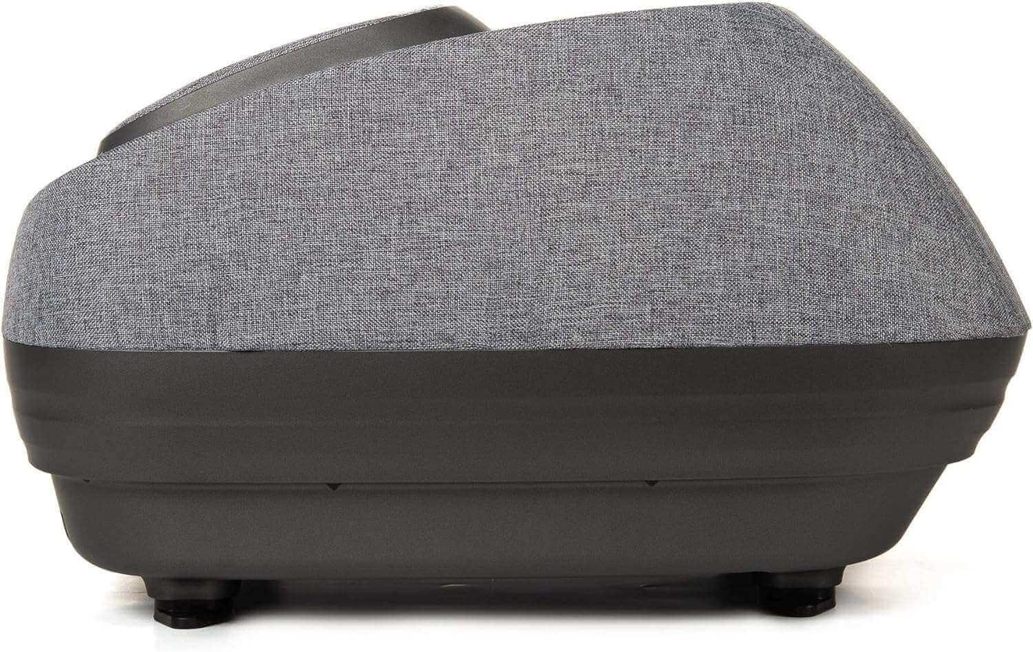 Elegant and Functional: This massager features a modern, sleek design with a relatively small footprint, making it suitable for both home and office environments. It's covered in a premium grade cotton-like grey fabric.
