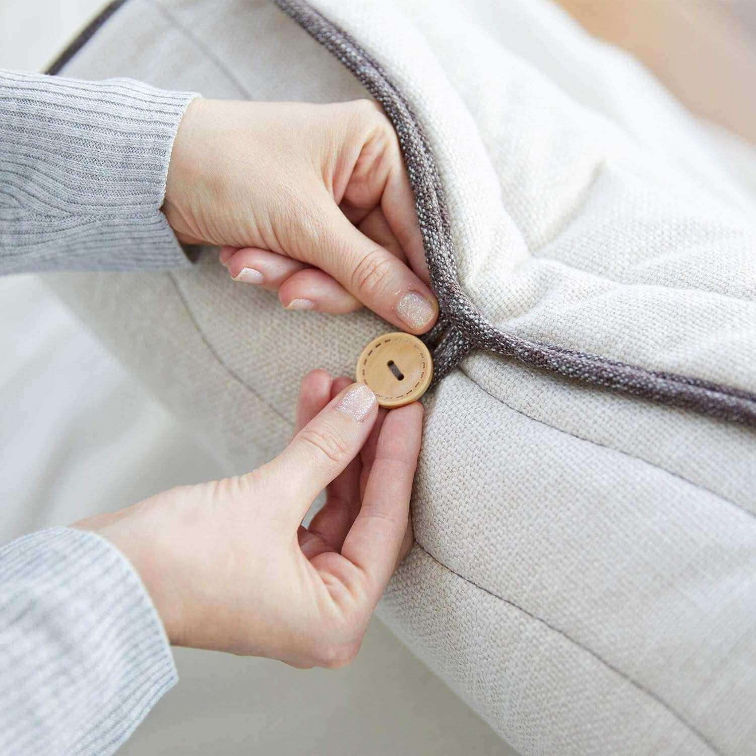 Innovative Roll-Up Design: When not in use, the Corron can be rolled up, looking like an ordinary cushion, which adds to its appeal for those concerned about aesthetics in their living space. It's upholstered in a soft, natural cotton-like material.
