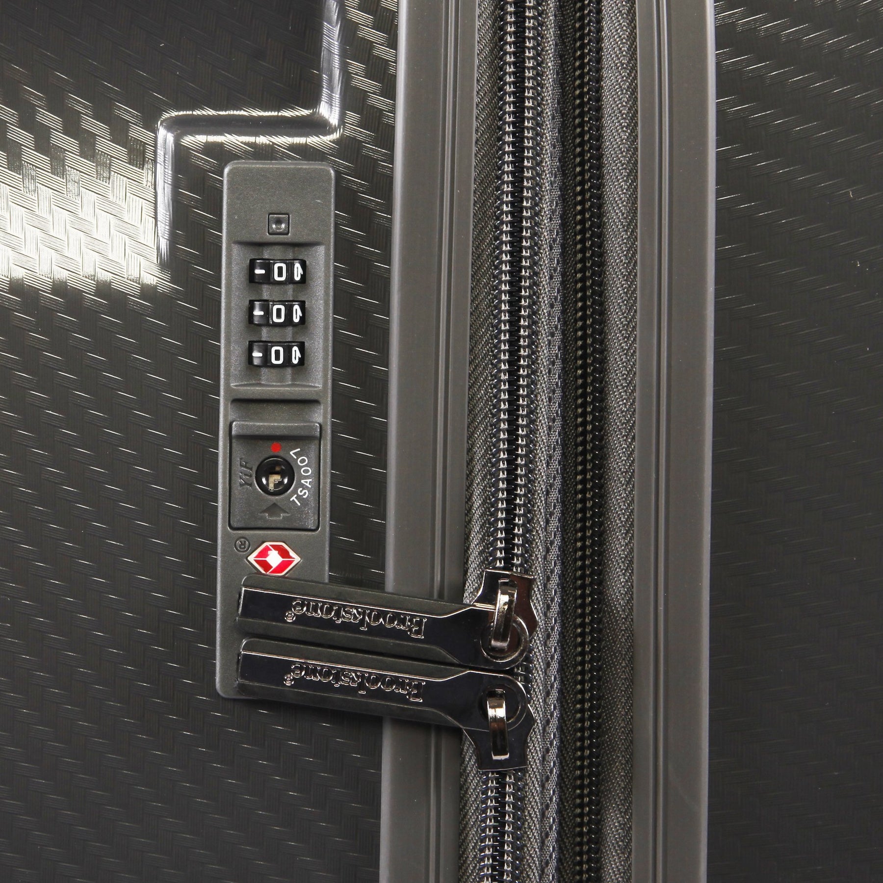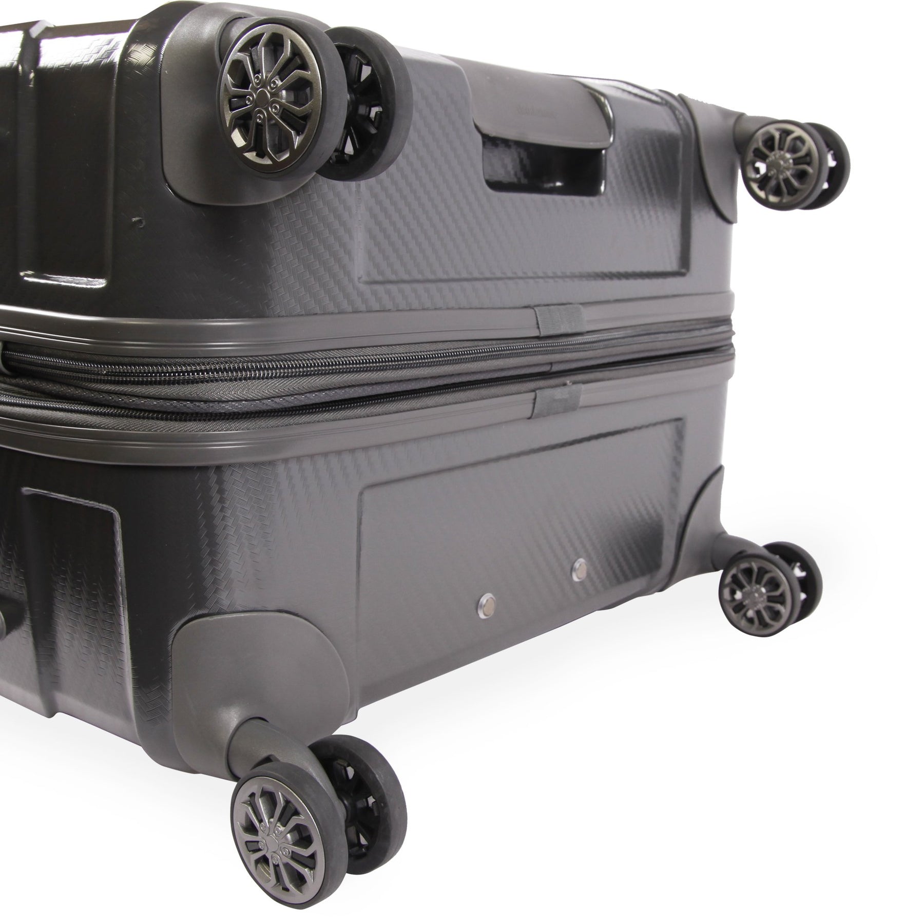 Exterior Dimensions - 18" L x 12" W x 29" H Weight - 11 lbs Trolley handle system 8 Wheel, 360 degree spinner system Expandable Detachable toiletry pouch TSA Lock 10 Year limited warranty ABS (Acrylonitrile butadiene styrene) Hardshell Wipe CleanWhen to Expect Your Order