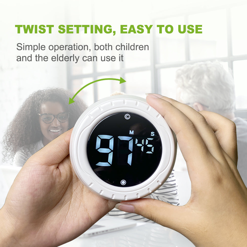 SIMPLE & QUIET: Turn the outer ring of the BALDR kitchen timer; the value will increase/decrease by a minimum unit of 5 seconds. When ready, press the lower/upper button on the screen to start or stop counting. Easy enough for kids or seniors with one-hand operation. There is no loud ticking, perfect for classroom, kitchen, meeting, or other activities.