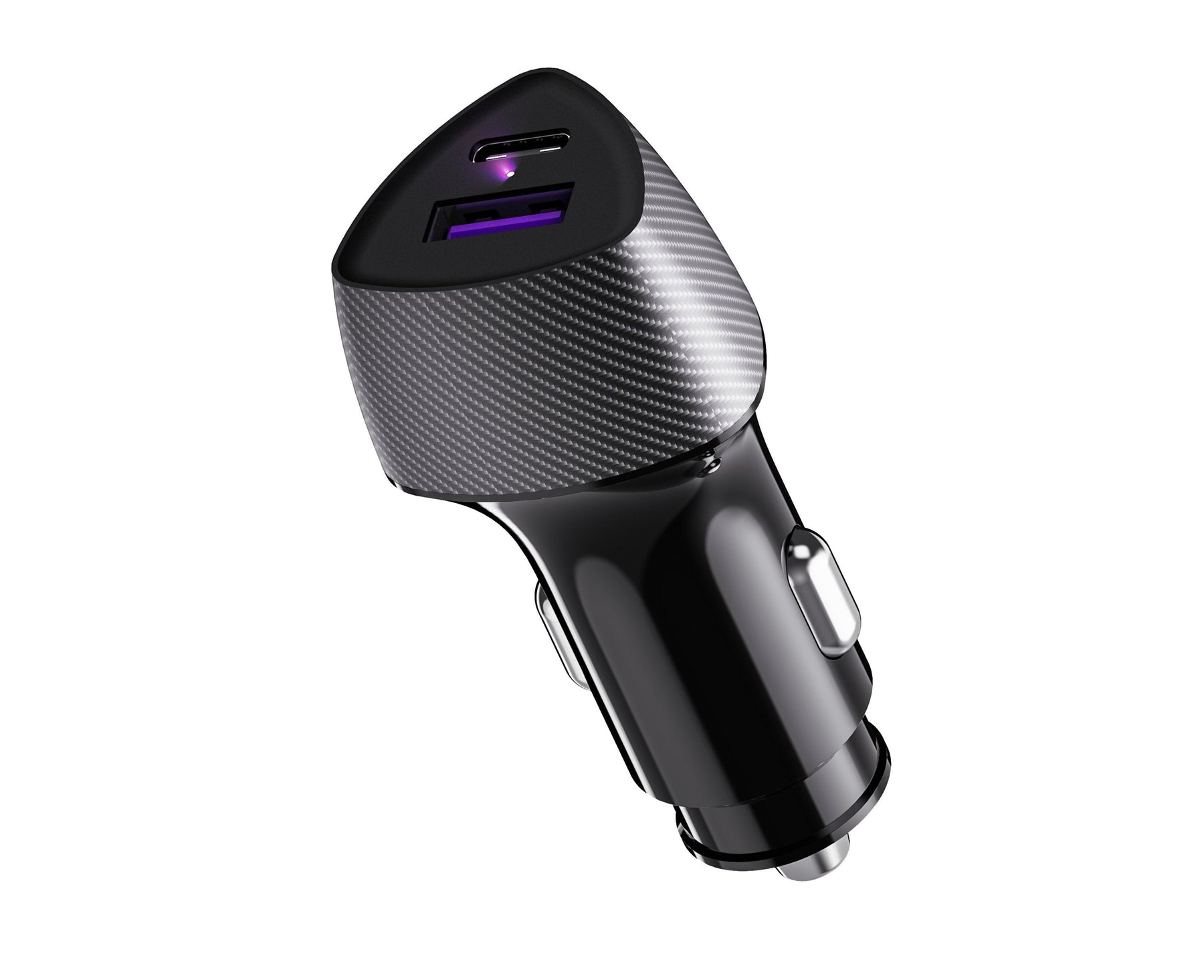 Brookstone Dual Port PD 38W Car charger – Carbon Fiber
