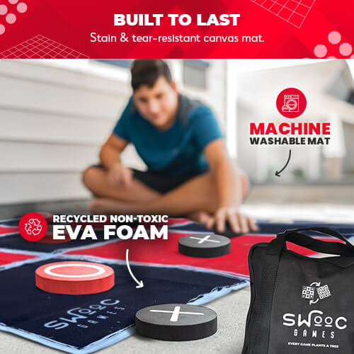 ββ REVERSE TO PLAY TIC TAC TOSS - Flip the mat to enjoy a lifesize toss version of the classic tic tac toe. The mega 5" foam checker discs double as X's and O's. Easy to grip and toss across!