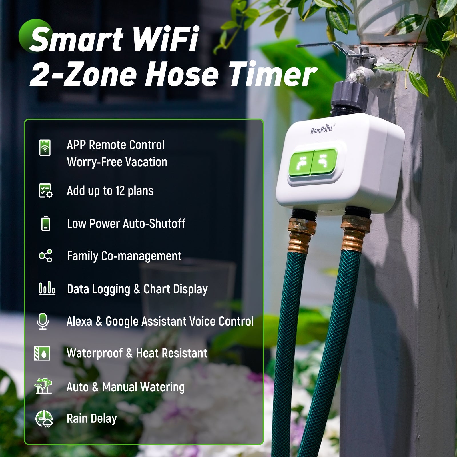 2-Zone Wireless Smart Water Timer with Hub for Outdoor Irrigation