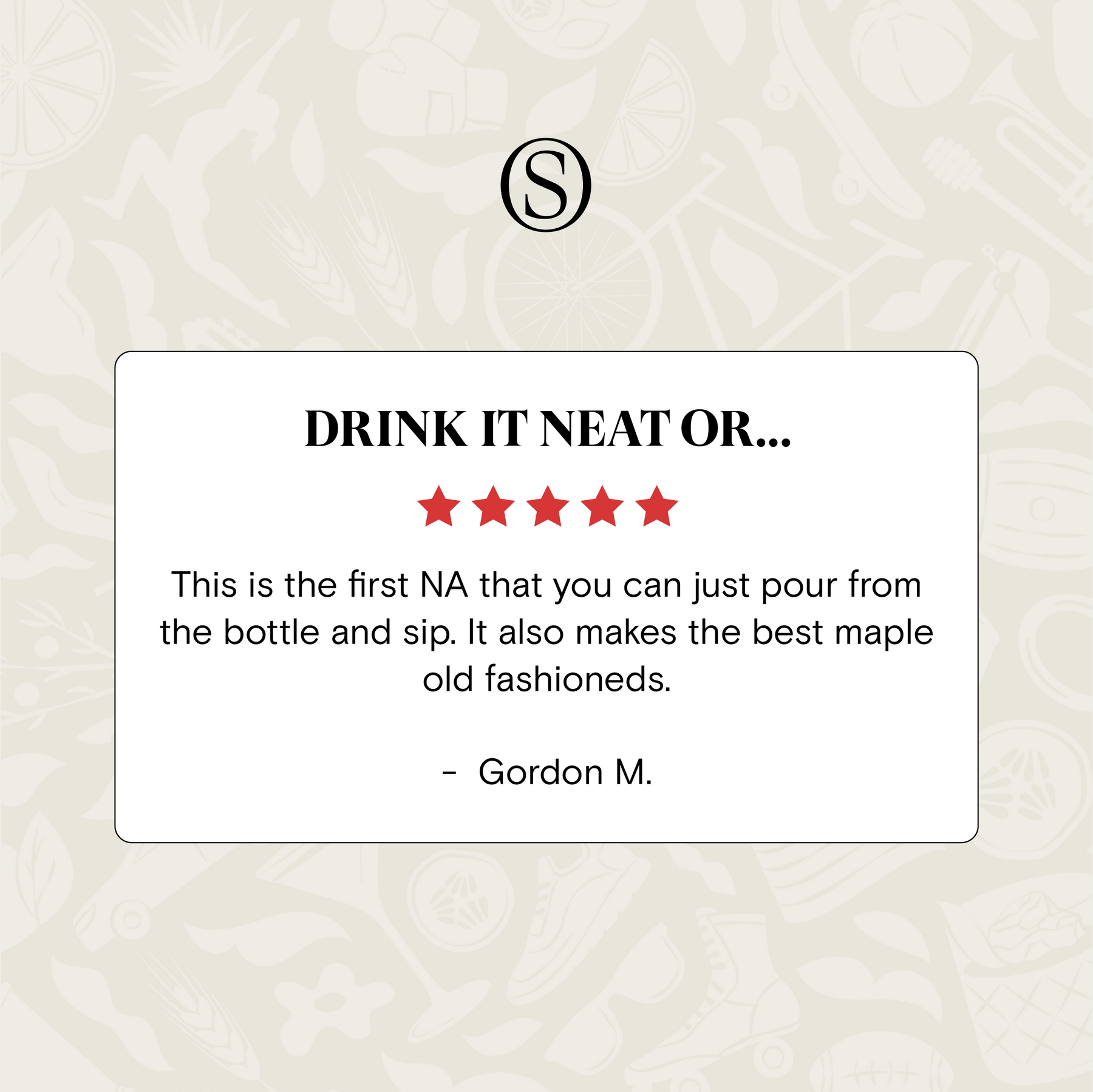 Our NA cinnamon whiskey can be used as a bold stand-in for your go-to classic whiskey cocktail, like an Old Fashioned or Stone Wall. Or, go HALFSIES blended in a 1:1 ratio with your favorite full-strength cinnamon whiskey for a low-alcohol (and fewer calories!) option. And even though it's smashing when stirred into an alcohol-free cocktail, this spicy lil' number can be enjoyed straight out of the bottle.