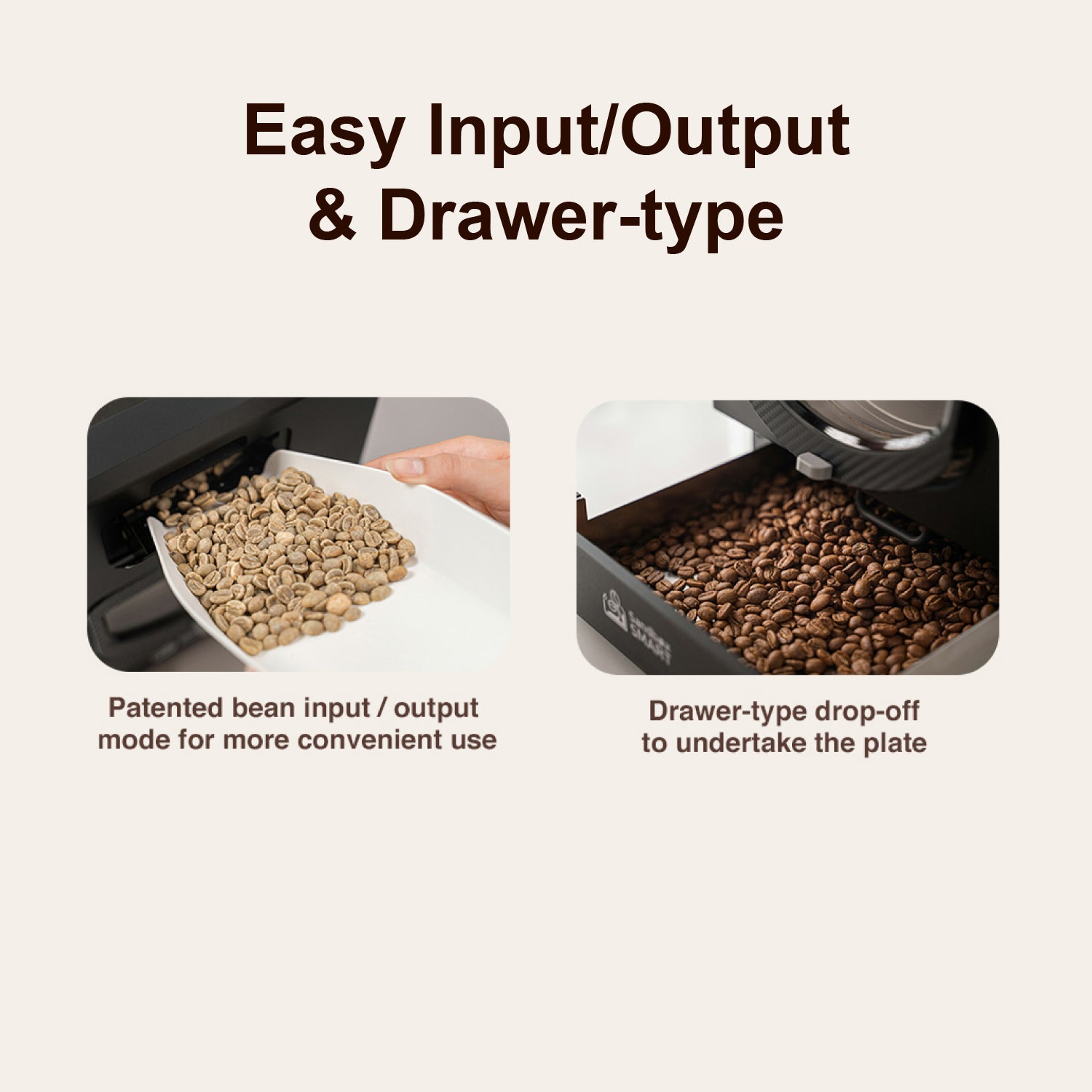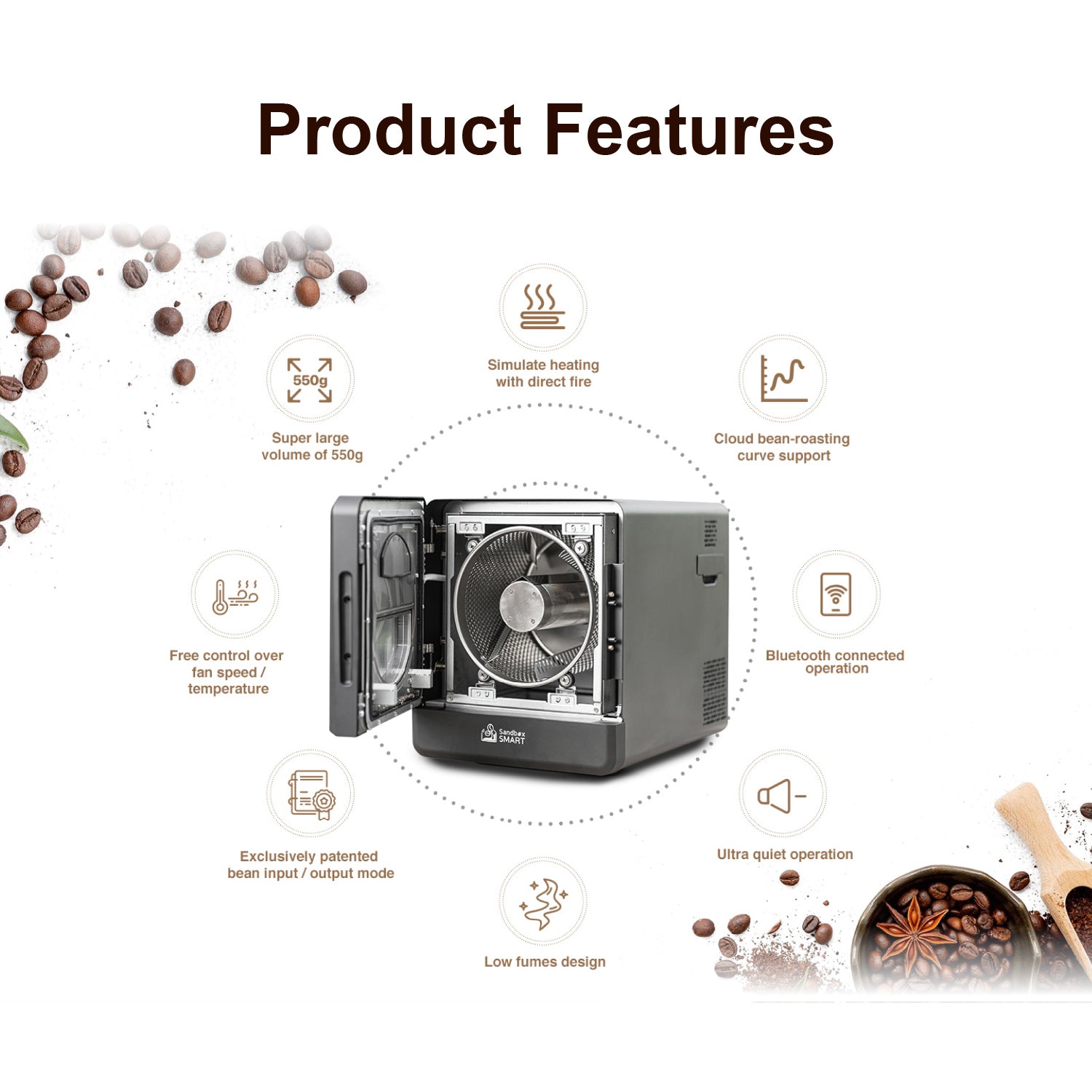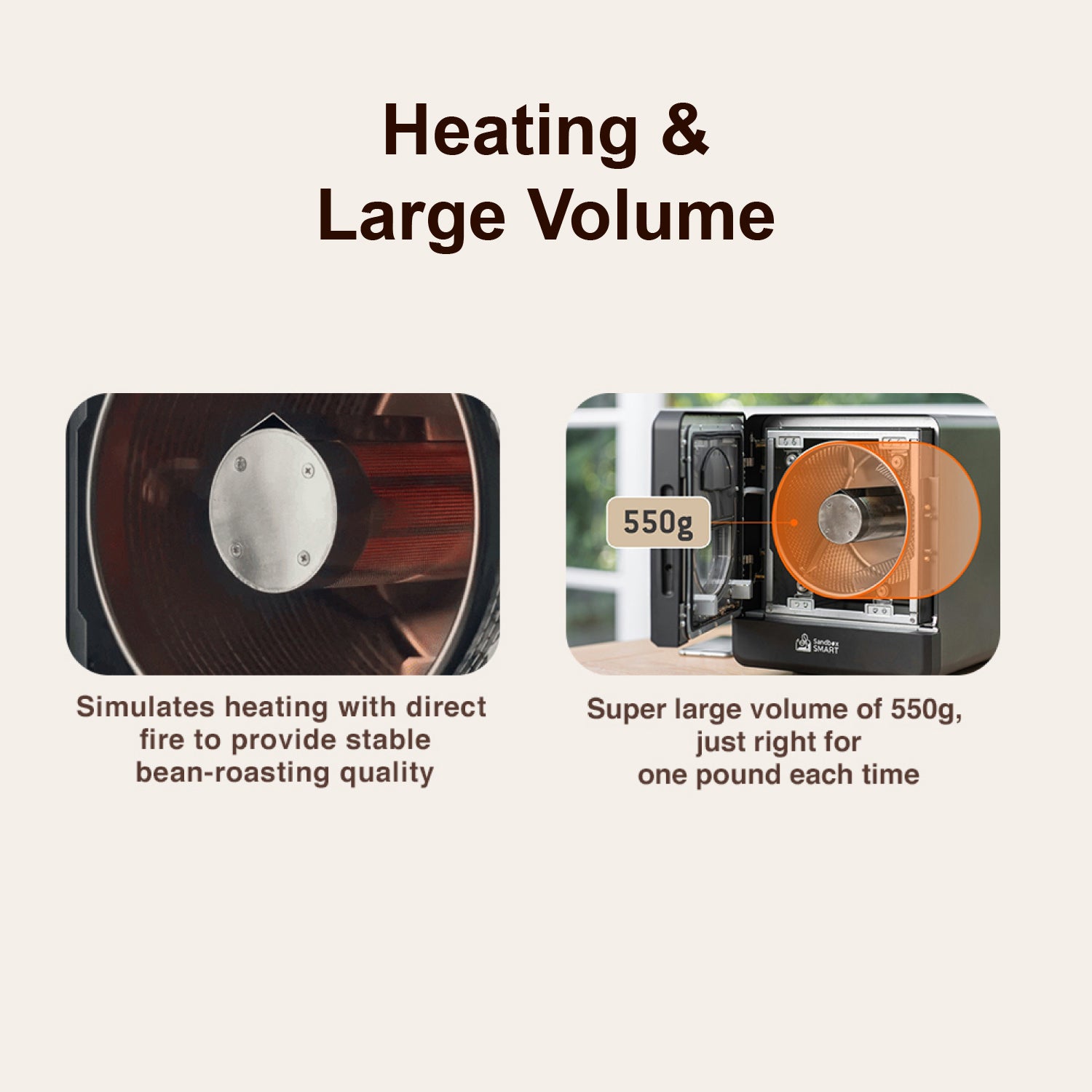 Simulates heating with direct fire to provide stable bean-roasting quality