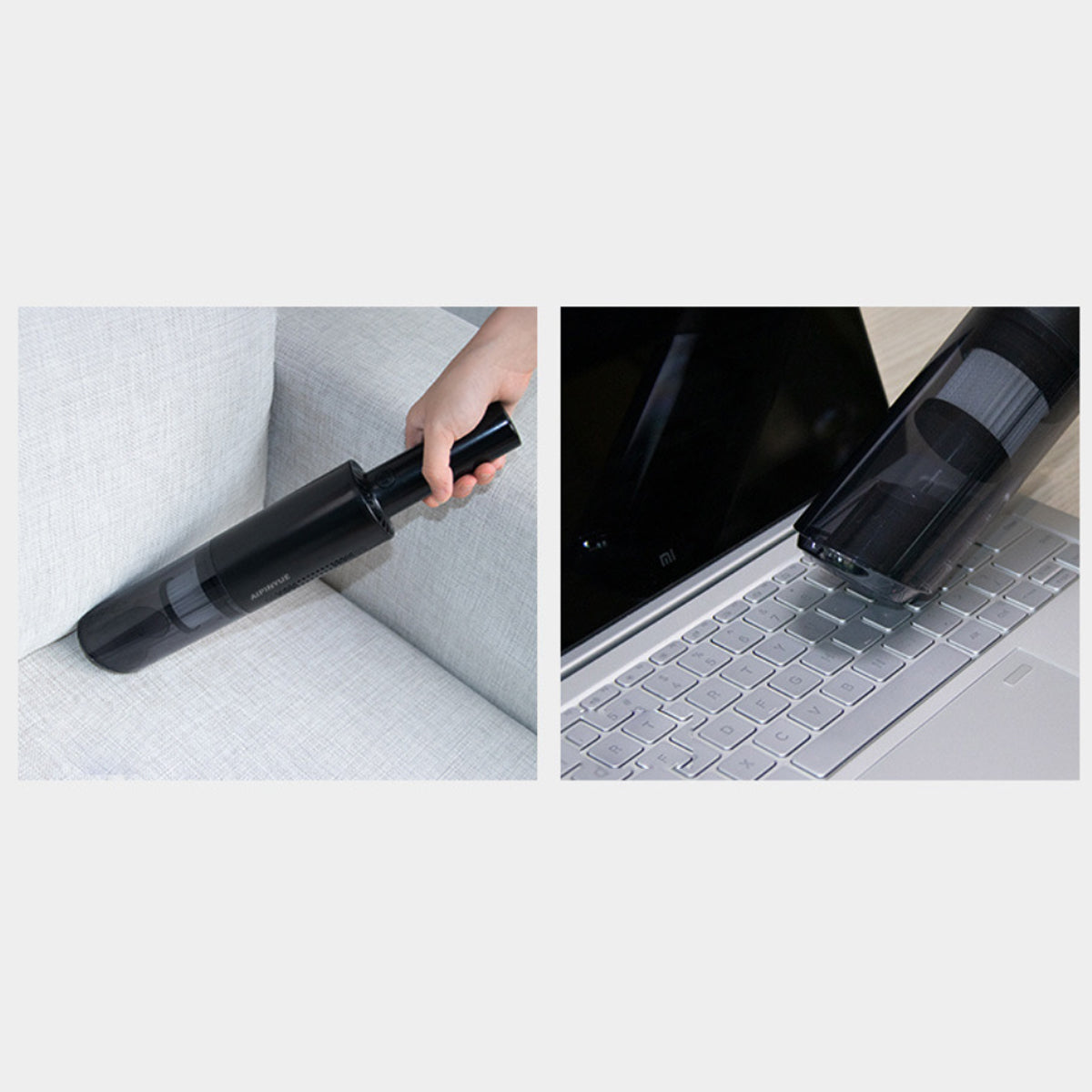 Get out your handheld mini vacuum cleaner to absorb any quick mess and clean it superfast in the car or anywhere at home. Clean any spills from the baby's car seat so the baby can play happily while you drive and keep your couches clean at home from pet hair so you can lounge on a fresh surface and breathe easy. No need to feel restricted while cleaning up the staircase either, as this wireless mini tool makes cleaning as easy as one two three and done! The attachments are handy when it comes to cleaning small hard to reach corners and crevices, the nozzle does a neat job and gobbles up all the dirt and dust or sand in minutes!