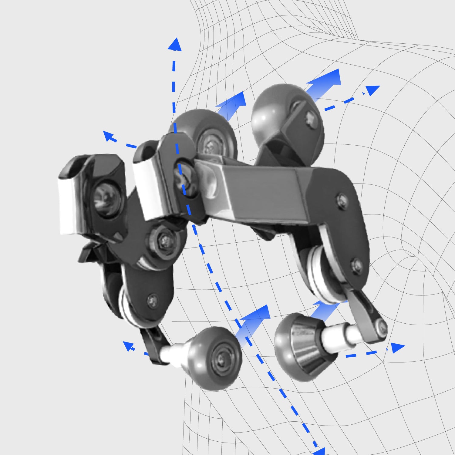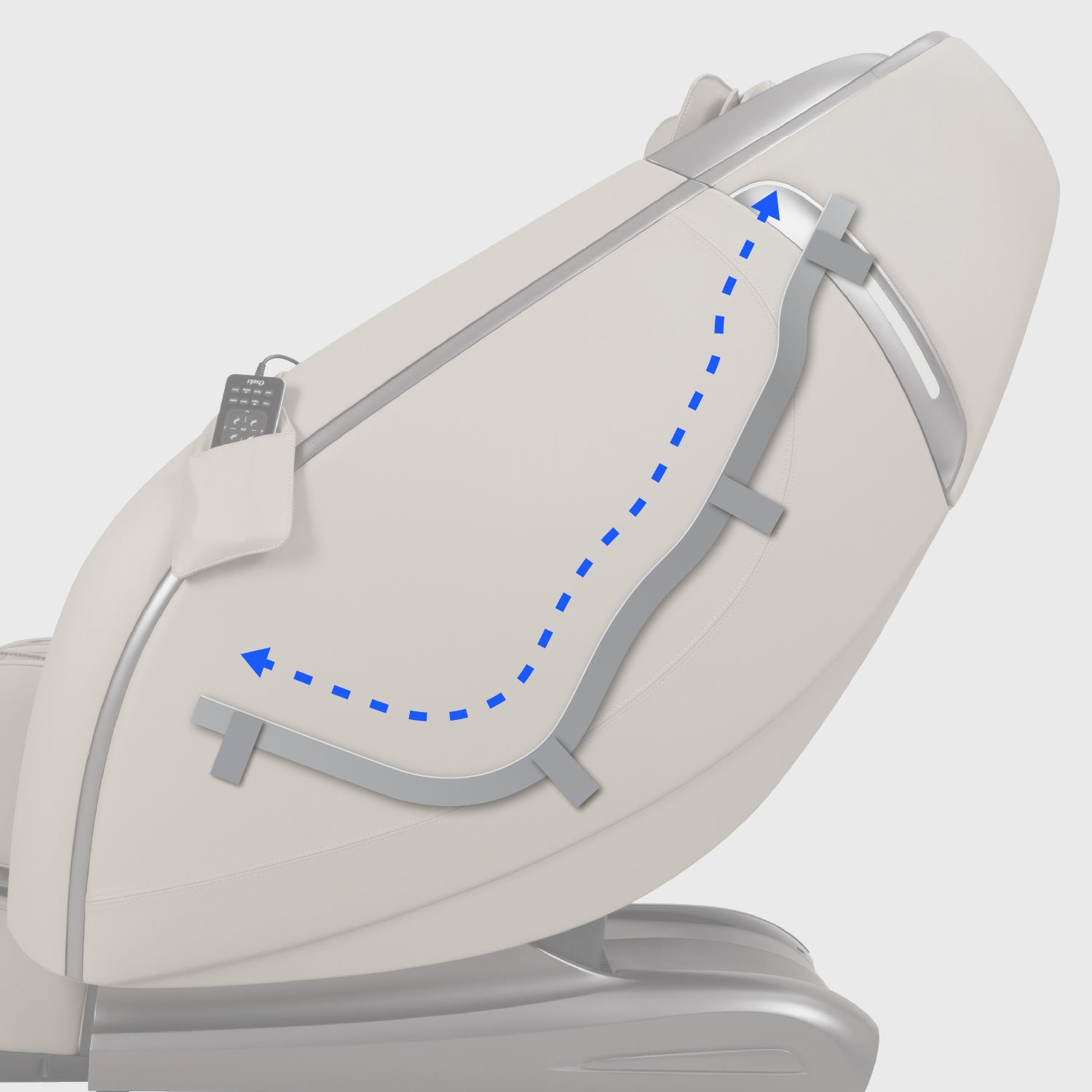 Through the use of a scientifically-engineered SL-Track, the massage rollers can extend from the base of the skull to the very edge of your hamstrings.