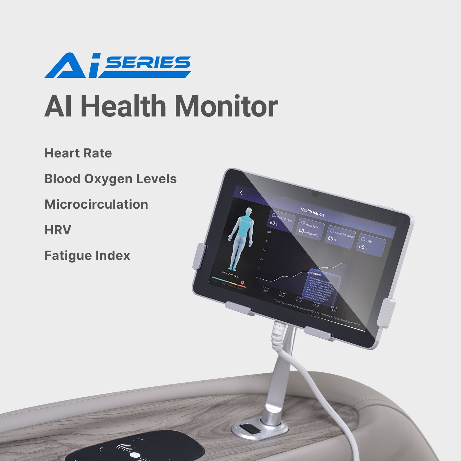 The Osaki Manhattan Duo features an advanced AI health sensor. When users hold the sensor on the left armrest, it detects metrics like heart rate, blood oxygen levels, microcirculation, HRV, and fatigue index. This AI delivers a personalized massage tailored to the user's body condition.