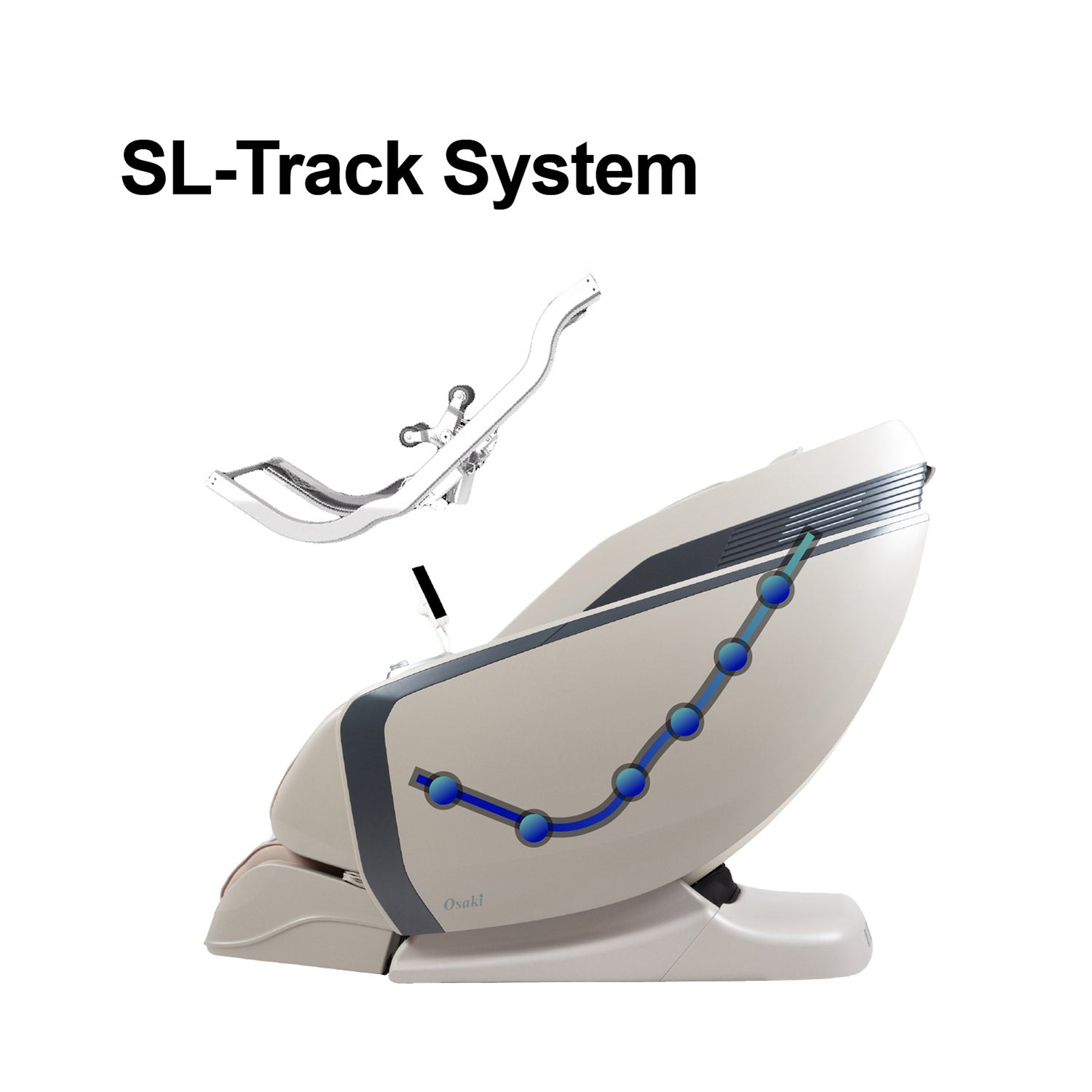 The Osaki Monarch LE features an SL track system, providing a wide extension of massage from the neck to the glutes. This system allows the rollers to move along the natural curve of the spine, offering a comprehensive and comfortable full-body massage.