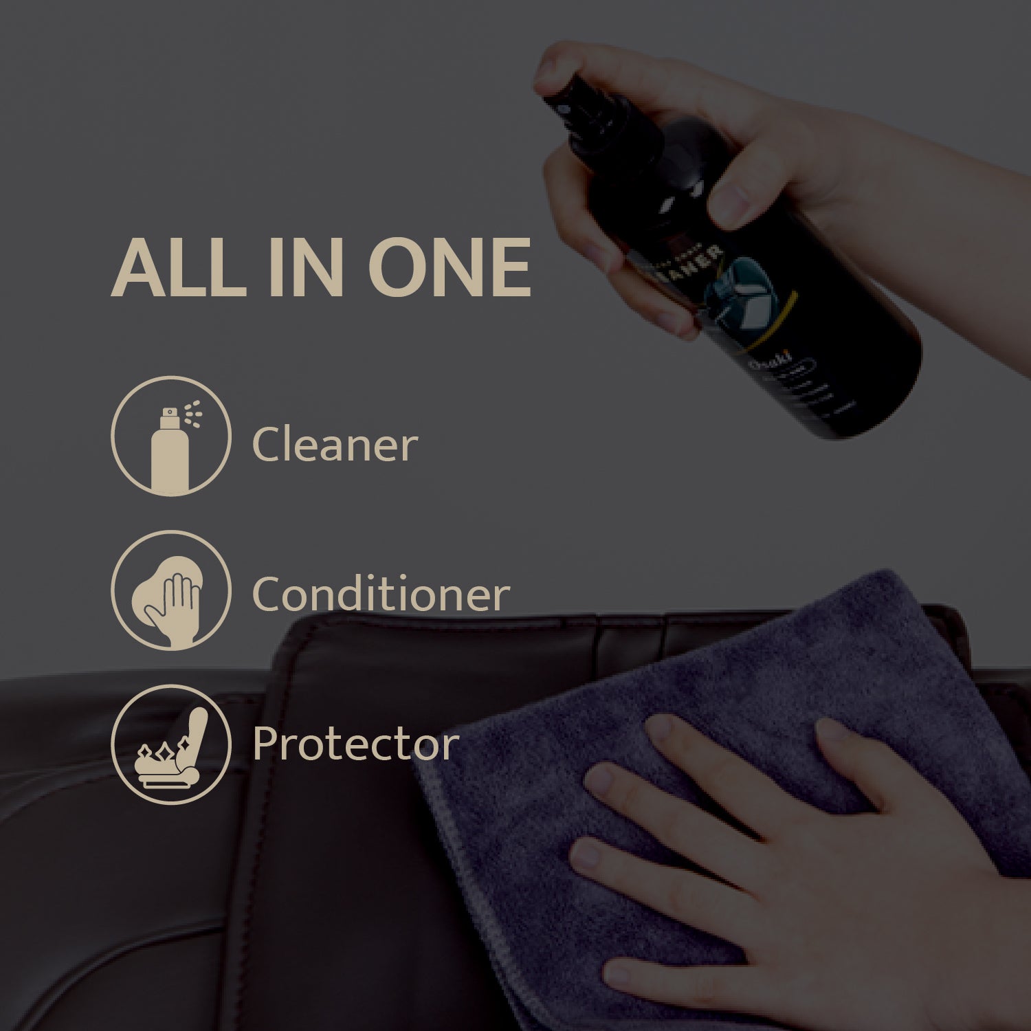 The Osaki Massage Chair Cleaner is the official cleaning serum for all Osaki, Titan, and Amamedic massage chairs. This multipurpose cleaner safely maintains, preserves, and nourishes most massage chair materials.