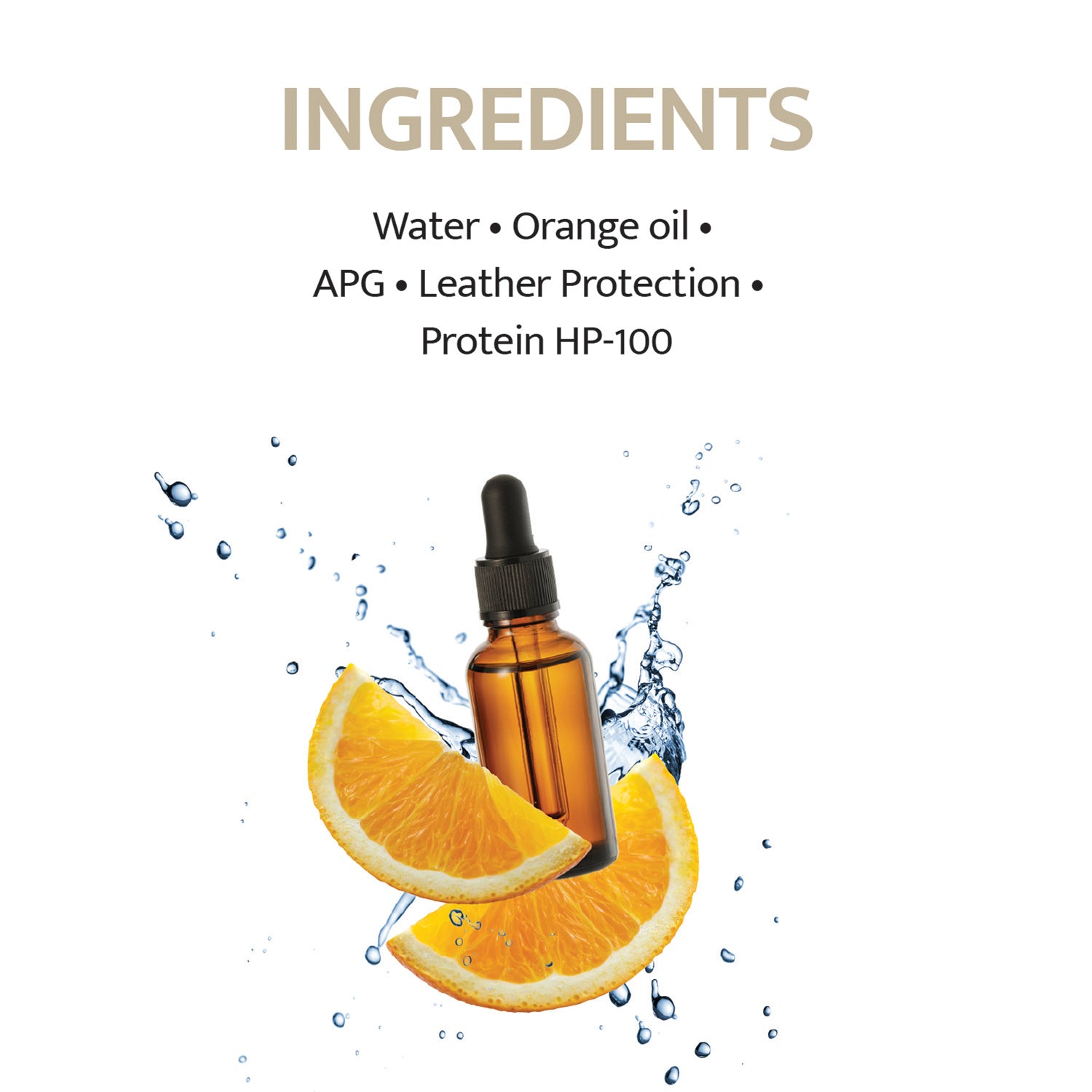 The Osaki cleaner only includes easy-to-understand ingredients; things like water, orange citrus oil, and leather protection protein HP-100. Additionally, the formula includes APG, a safe detergent that is naturally biodegradable.