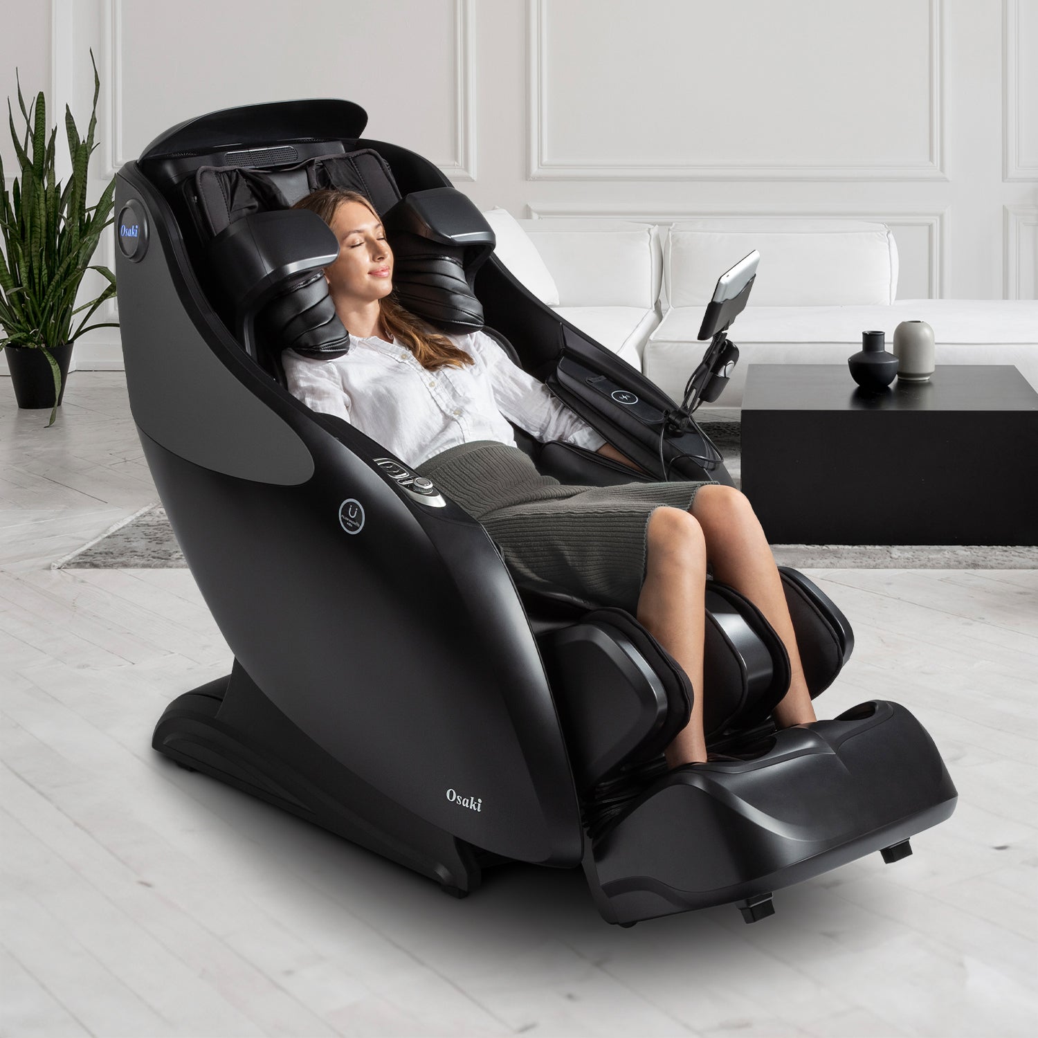Alleviate muscle tension, reduce stress, and promote relaxation using the Osaki Master 4D+. This new revolutionary massage chair provides advanced features such as a thorough shoulder massage, muscle tension detection, and zero gravity positionings, which can be utilized with the Osaki Premium Master app or a call to Alexa.