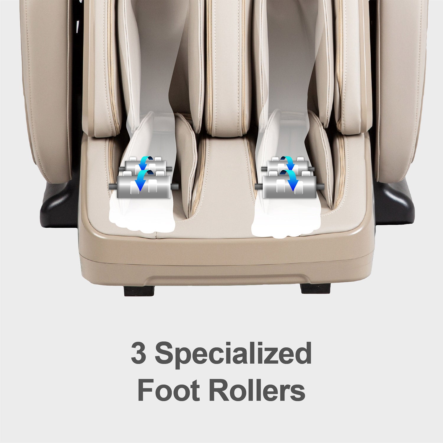 The Champ 2 features two specialized foot rollers on each side, designed with scientifically engineered reflexology ridges to stimulate acupuncture points.