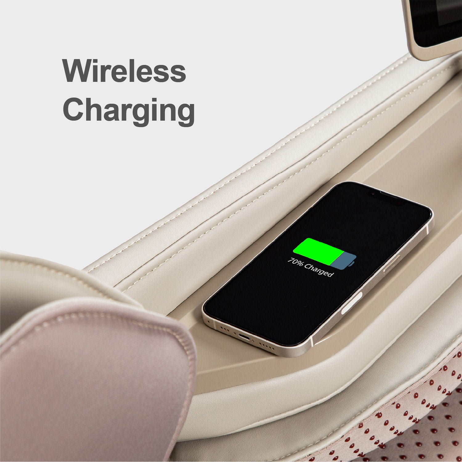 The Champ 2 includes a built-in wireless phone charging pad, ensuring your devices stay powered while you relax.