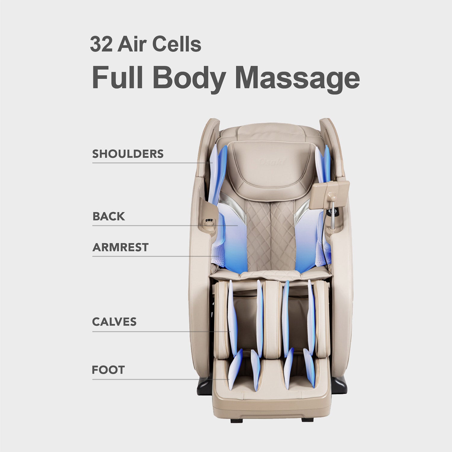 The Champ 2 compromises 32 air cells throughout the chair to offer a full body massage experience, while helping to increase blood circulation throughout the body.