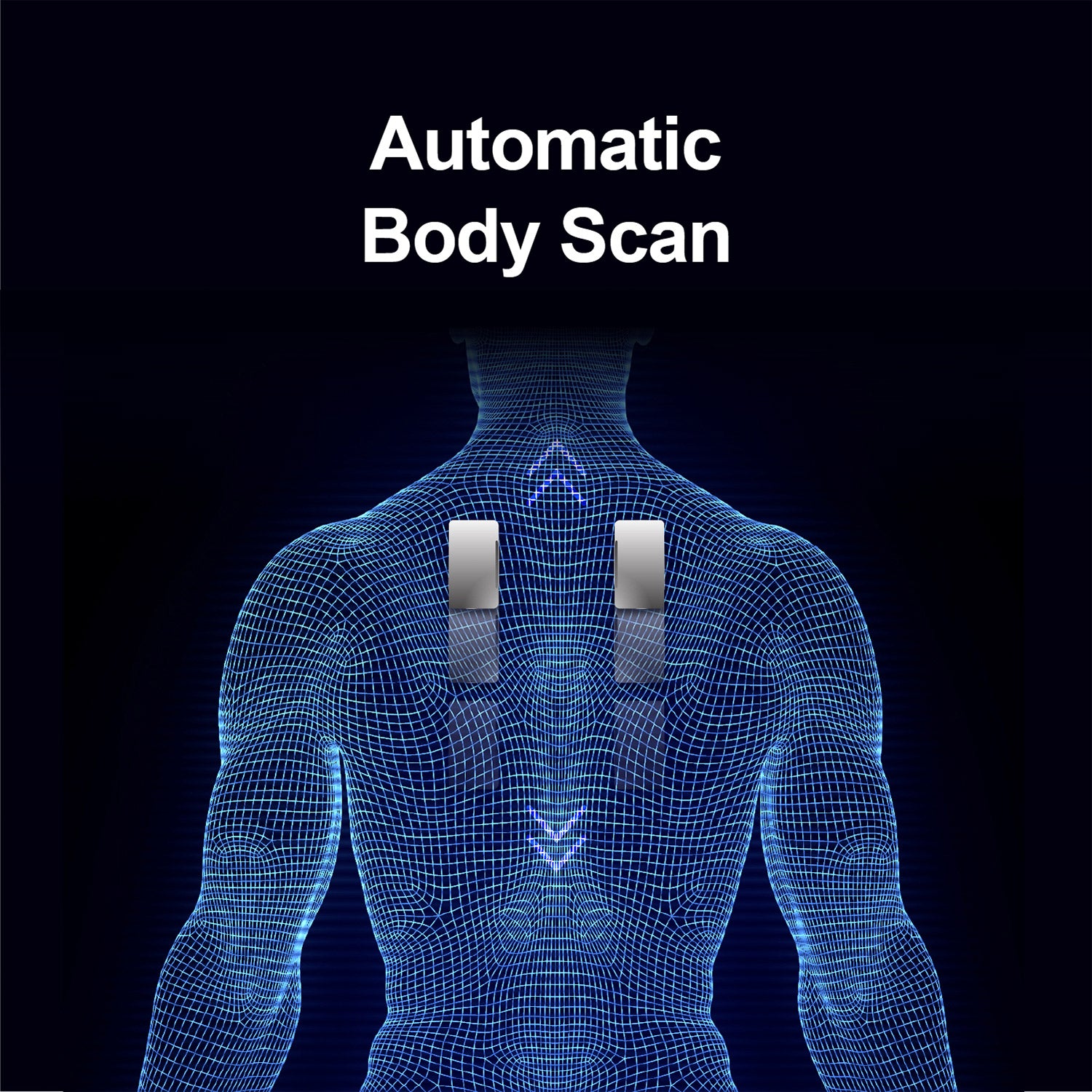The automatic body scan feature tailors the massage experience for optimal comfort and effectiveness by measuring the user's unique shape and size.