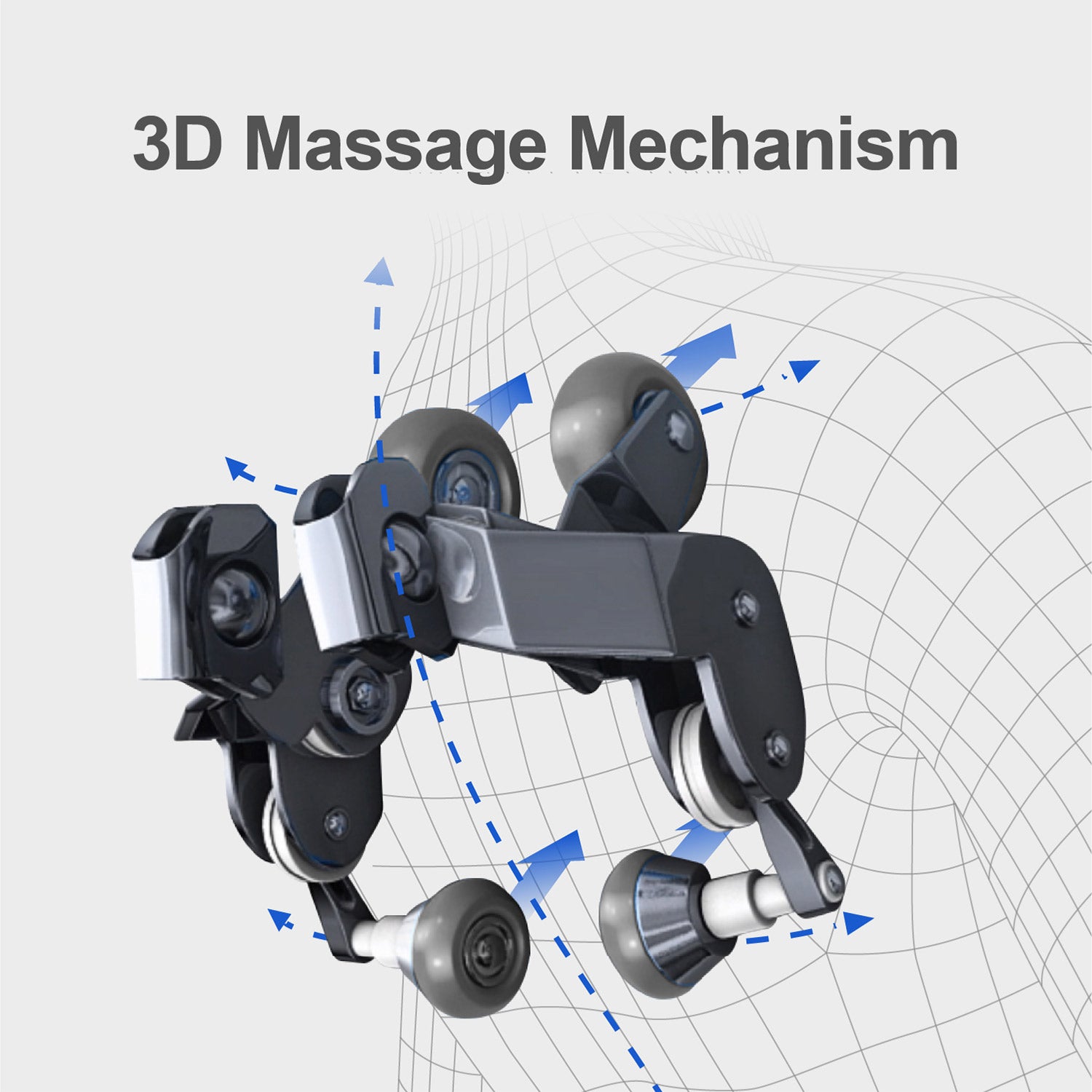 The 3D massage mechanism in Champ 2 employs advanced technology to adjust the depth, intensity, and focus of the massage rollers, ensuring effective relief by contouring to the body's natural curves.