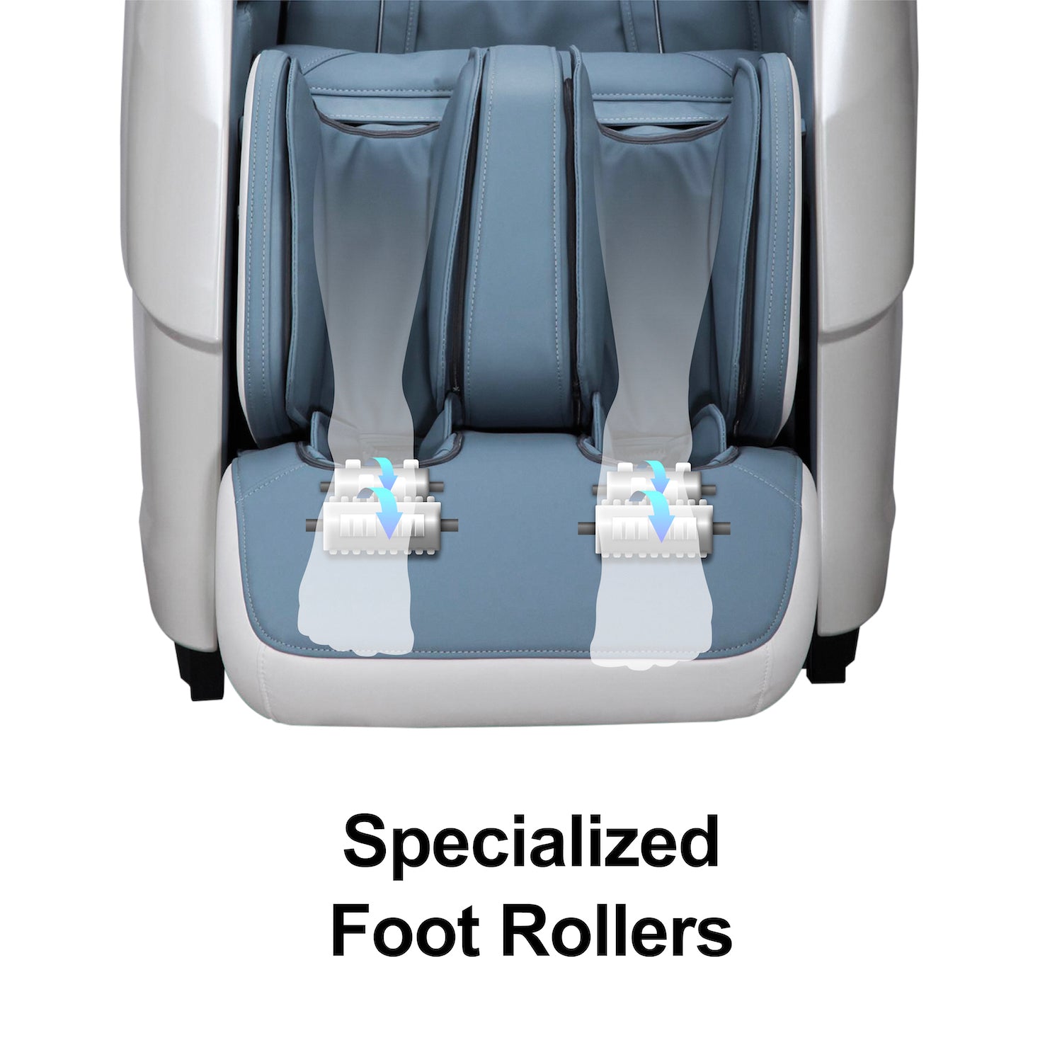 The Rejūv is equipped with Specialized Foot Rollers that were created to activate a series of acupuncture points using scientifically designed reflexology ridges . The footrest holds 2 rollers for each foot, giving a thorough massage from heel to toe.