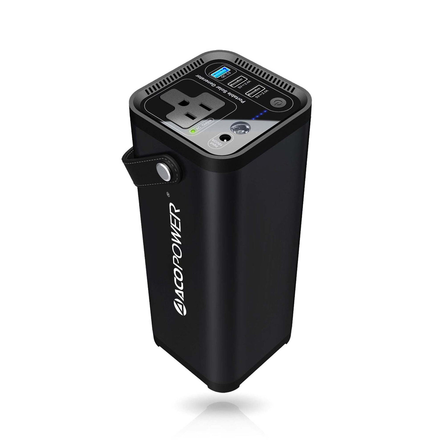ACOPOWER portable power station gives you the extra boost you need when off the grid. The ground breaking pure sine wave AC inverter will power your drone batteries, CPAP machines, lights, mobile devices, power tools and laptops. The PS100 packs enough power to run an LED flat screen TV so you doing miss the next game of Throne when camping with the family, it can be recharged with our solar powered mats to insure you have power when and where you need it.