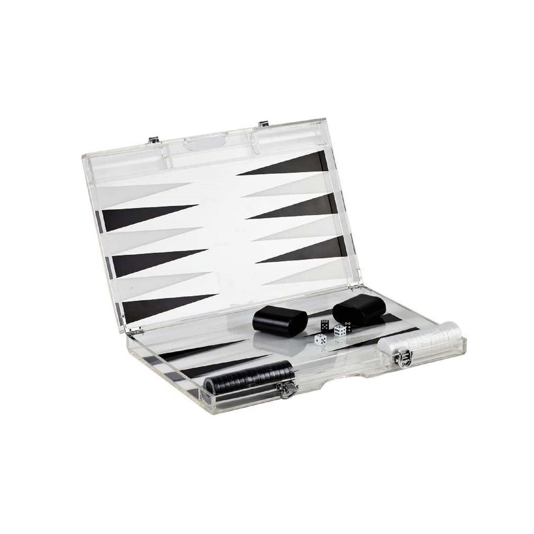 Step into the world of refined gaming with our Premium 18-Inch Lucite Backgammon Set. Crafted with precision and attention to detail, this set is more than just a game – it's a statement of style. The Lucite construction gives the board a clear and elegant appearance, making it a centerpiece for any game night. The 14-inch size strikes the perfect balance, offering a playable surface that remains portable and easy to store. Each piece is carefully crafted for a satisfying gameplay experience. The precision-made checkers and dice add an extra layer of enjoyment to every move, whether you're a backgammon enthusiast or just getting started. Not only does this set deliver in terms of aesthetics and gameplay, but it's also built to last. The sturdy construction ensures that you can enjoy countless games without worrying about wear and tear. For added convenience, we've included a custom-designed carrying case. It not only protects your backgammon set during travel but also enhances the overall experience with its stylish design. Elevate your gaming experience with the Premium 18-Inch Lucite Backgammon Set – where elegance meets entertainment.
