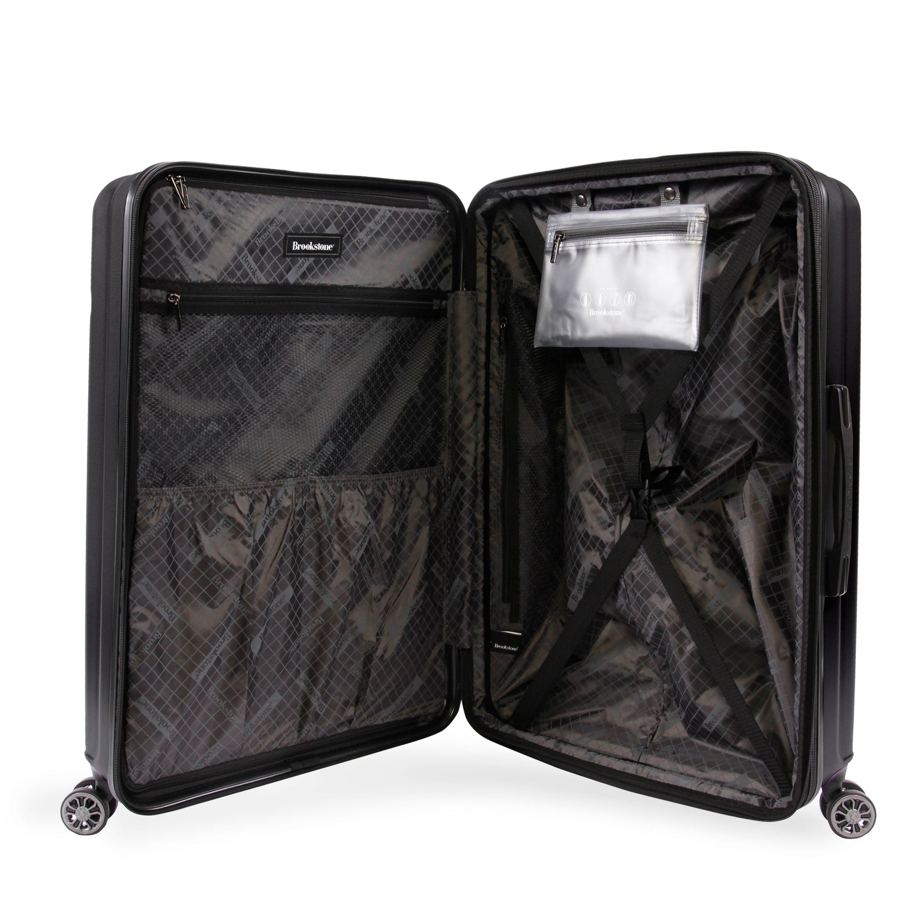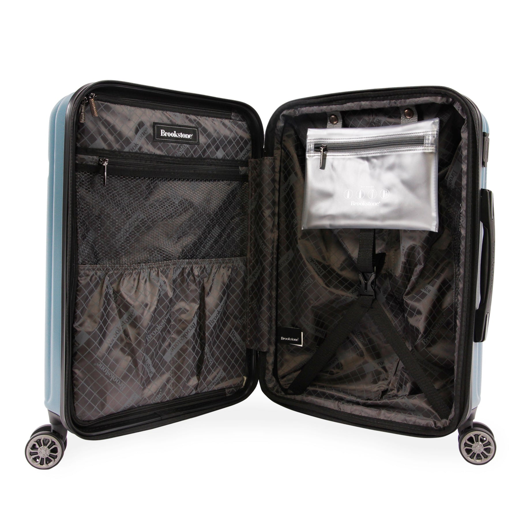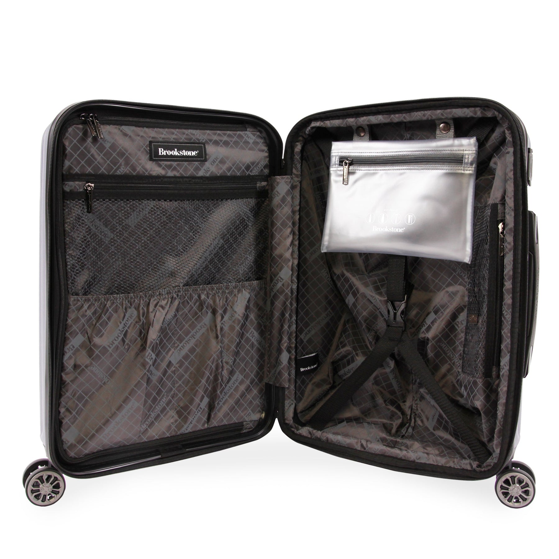 Travel in style with the Nelson Collection luggage by Brookstone. Loaded with features such as USB charging port (available in 21" Only), TSA lock (available in 29" Only), removable toiletry kit and is expandable for more packing space; perfect for the travelers who want a little more from their luggage.