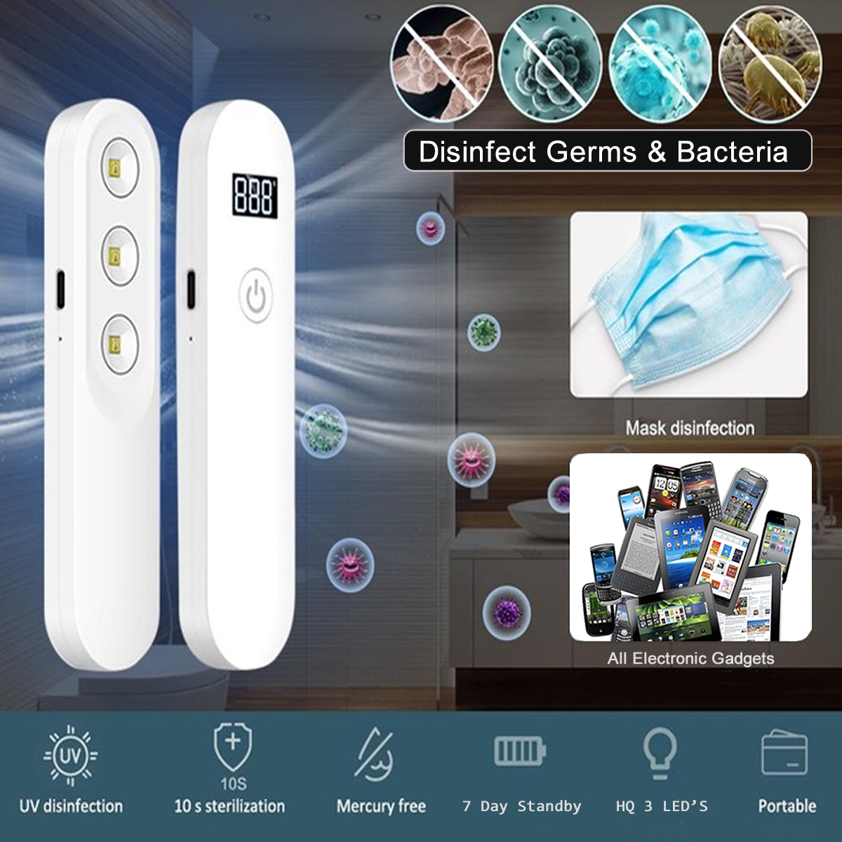 Always carry this handheld, portable Mini Ultraviolet bar light that can eliminate and disinfect germs and viruses in seconds, which cannot be seen with the naked eyes but they are pretty much there practically on everything from our phones, iPads, and laptops to kid's toys, remote controls, and door handles.