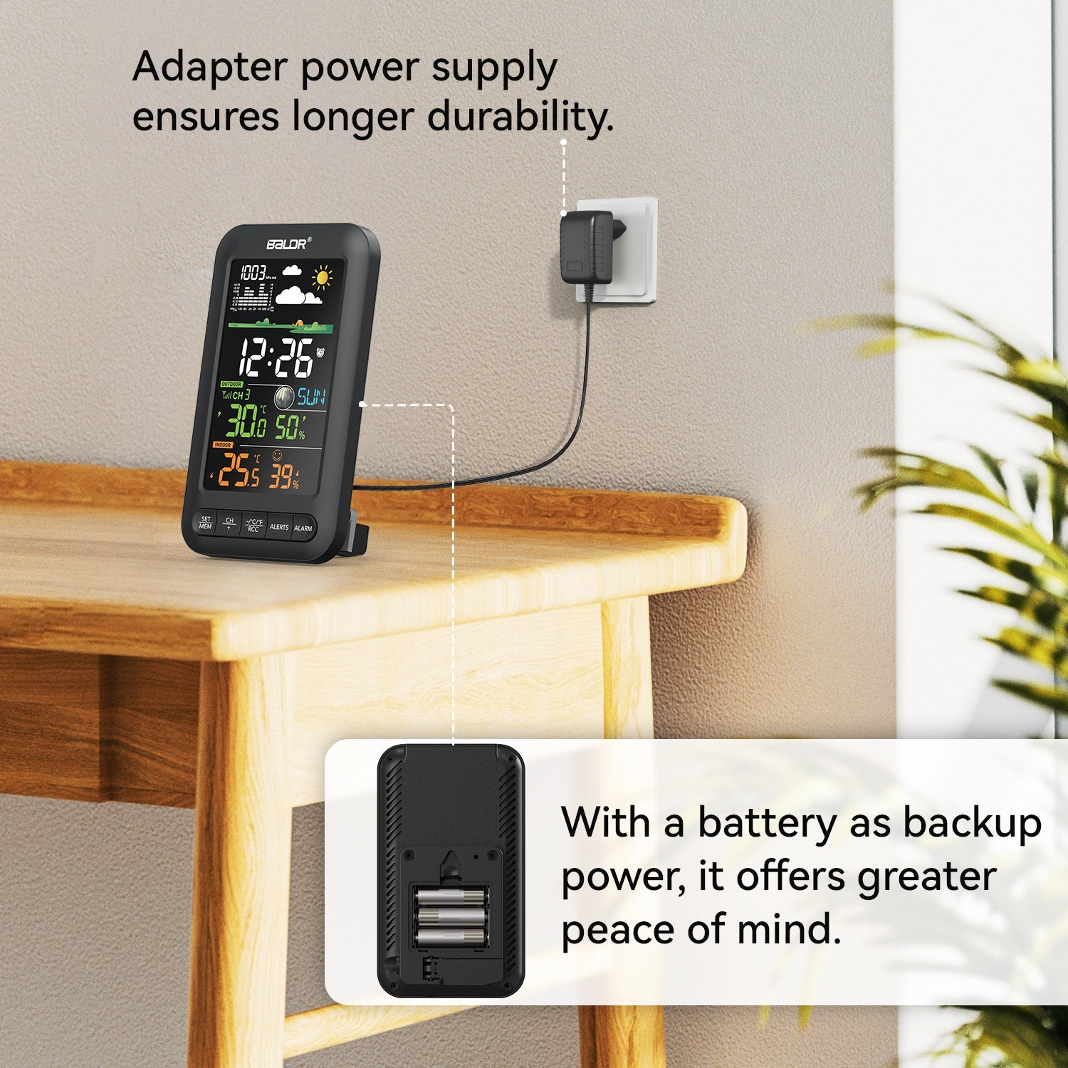 The BALDR Wireless Weather Station is a versatile all-in-one home weather monitor designed to keep you informed and comfortable. It features a high-precision barometer for accurate weather forecasting, dual indoor and outdoor temperature and humidity displays with dynamic trend indicators, and support for up to three remote sensors to track conditions in multiple areas like your yard, garage, or greenhouse. The large, clear display makes it easy to view essential data at a glance, while the system also records daily high and low readings for smart climate management.
