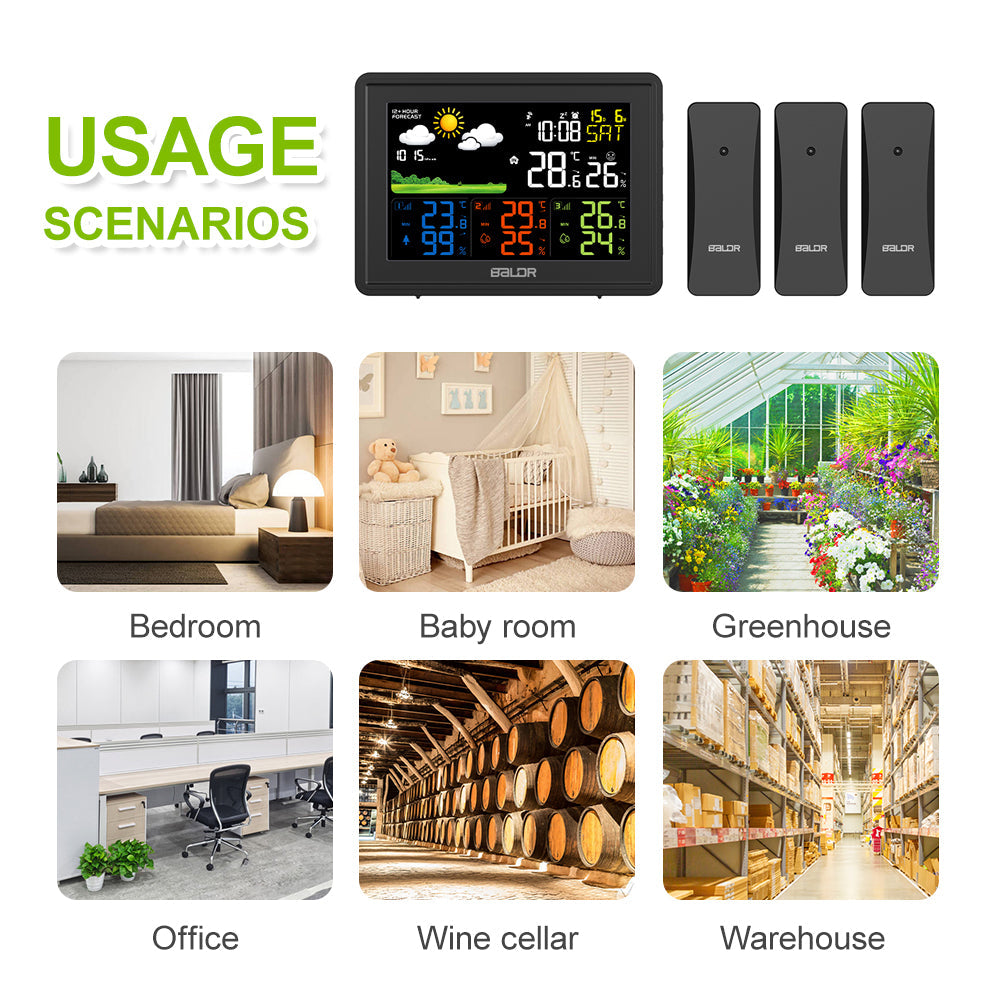 Package Contains: 1x B0359WST4H4PR Wireless Weather Station, 3x Remote Sensors, 1xAC adaptor,1x Instruction Manual