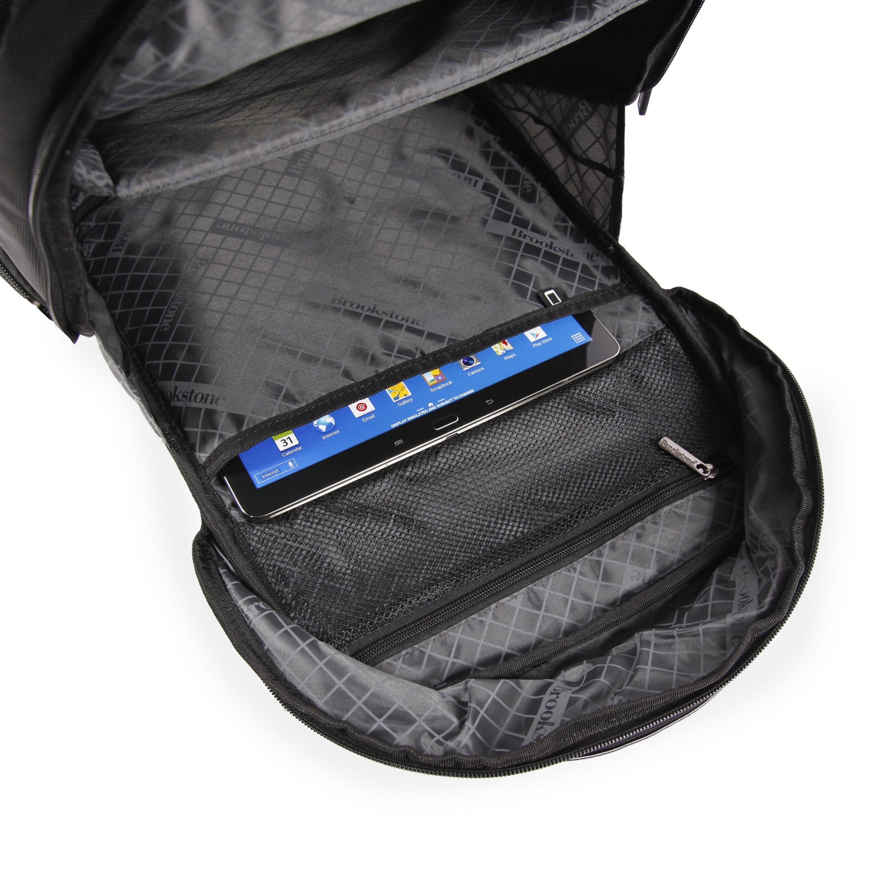 Head off to work or school with your laptop and other must-haves packed safely and stylishly inside this durable Bryce backpack by Brookstone. The backpack features a laptop/tablet compartment, RFID pocket and a luggage trolley back sleeve for easy transportation.