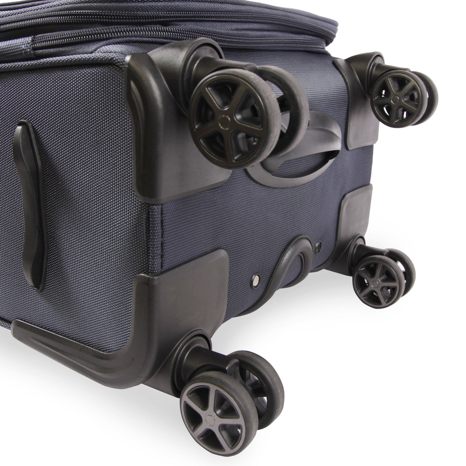 Exterior Dimensions - 13.5" L x 8.5" W x 21" H Weight - 8 lbs Trolley handle system Dura-guard corner protectors 8 Wheel, 360 degree spinner system Expandable Detachable toiletry pouch TSA lock USB Port 10 Year limited warranty Meets carry-on requirements for most major airlines Nylon Spot CleanWhen to Expect Your Order