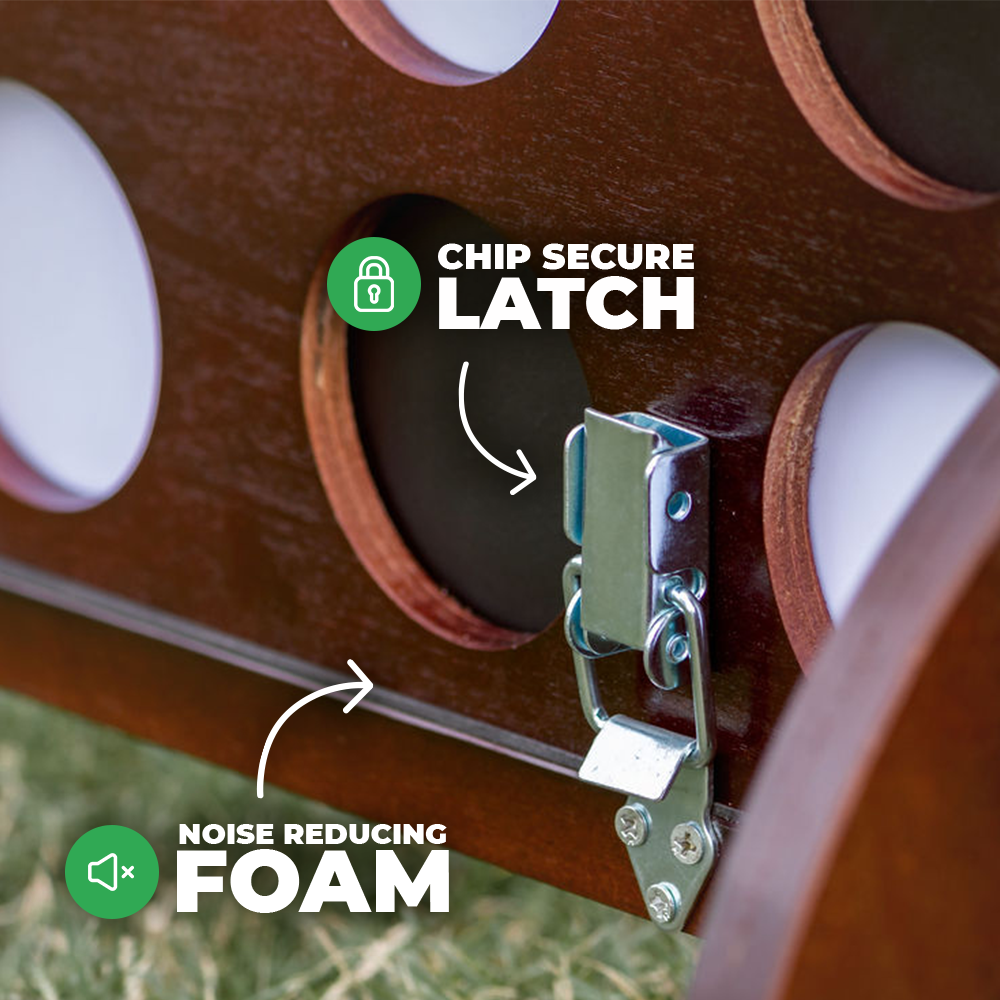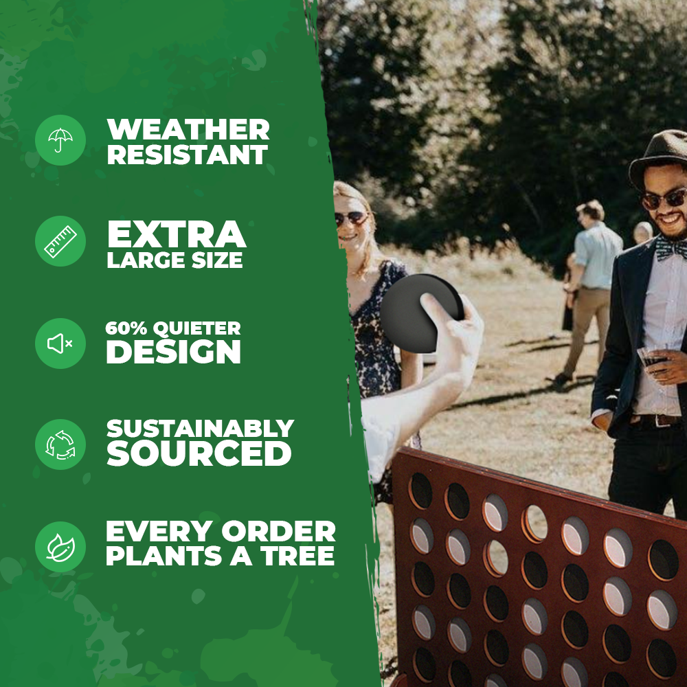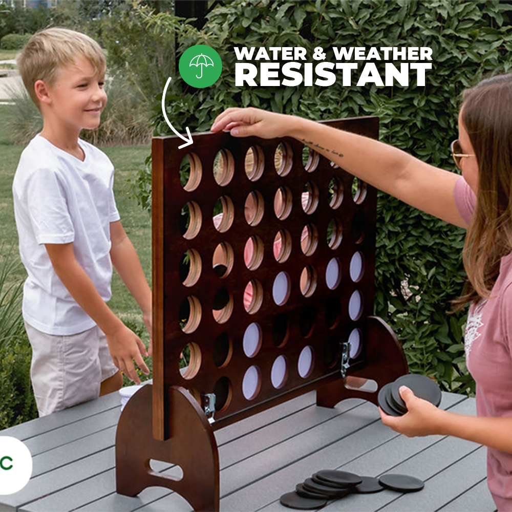 Step up your game with this all-weather Giant Four in a Row game. Crafted from sustainably sourced New Zealand Poplar Wood. Keep the kids busy without a headache—its noise-reducing design cuts sound by over 60% compared to competitors. And whether it's for the backyard, game room, camping, or anywhere else you can think of... It is guaranteed to be the new family fav!