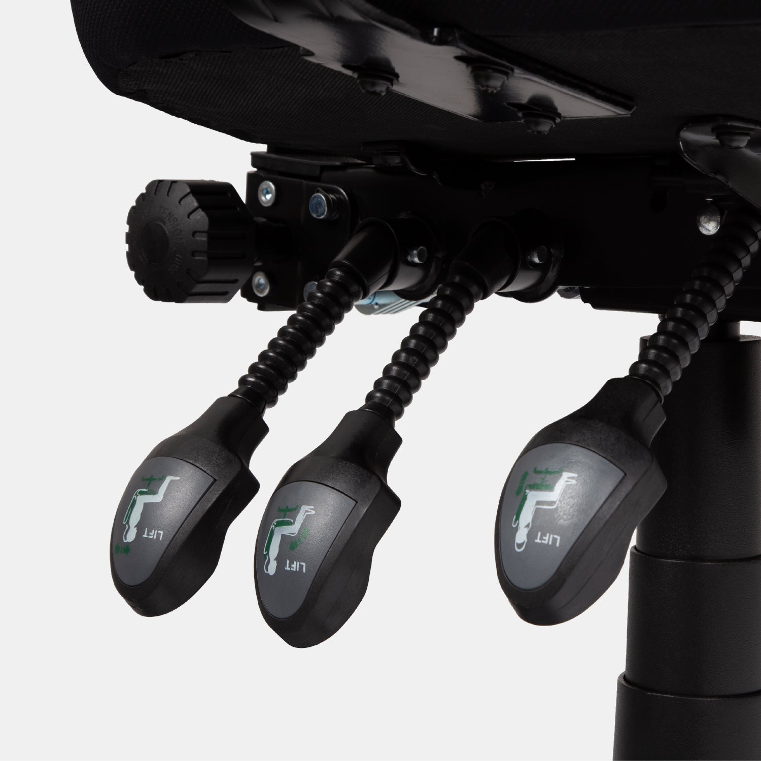 While sitting, reach down alongside the seat to easily make alterations to your experience. Manually make micro adjustments to the angle of your backrest and seat, as well as quickly fine tune the height of the entire chair.