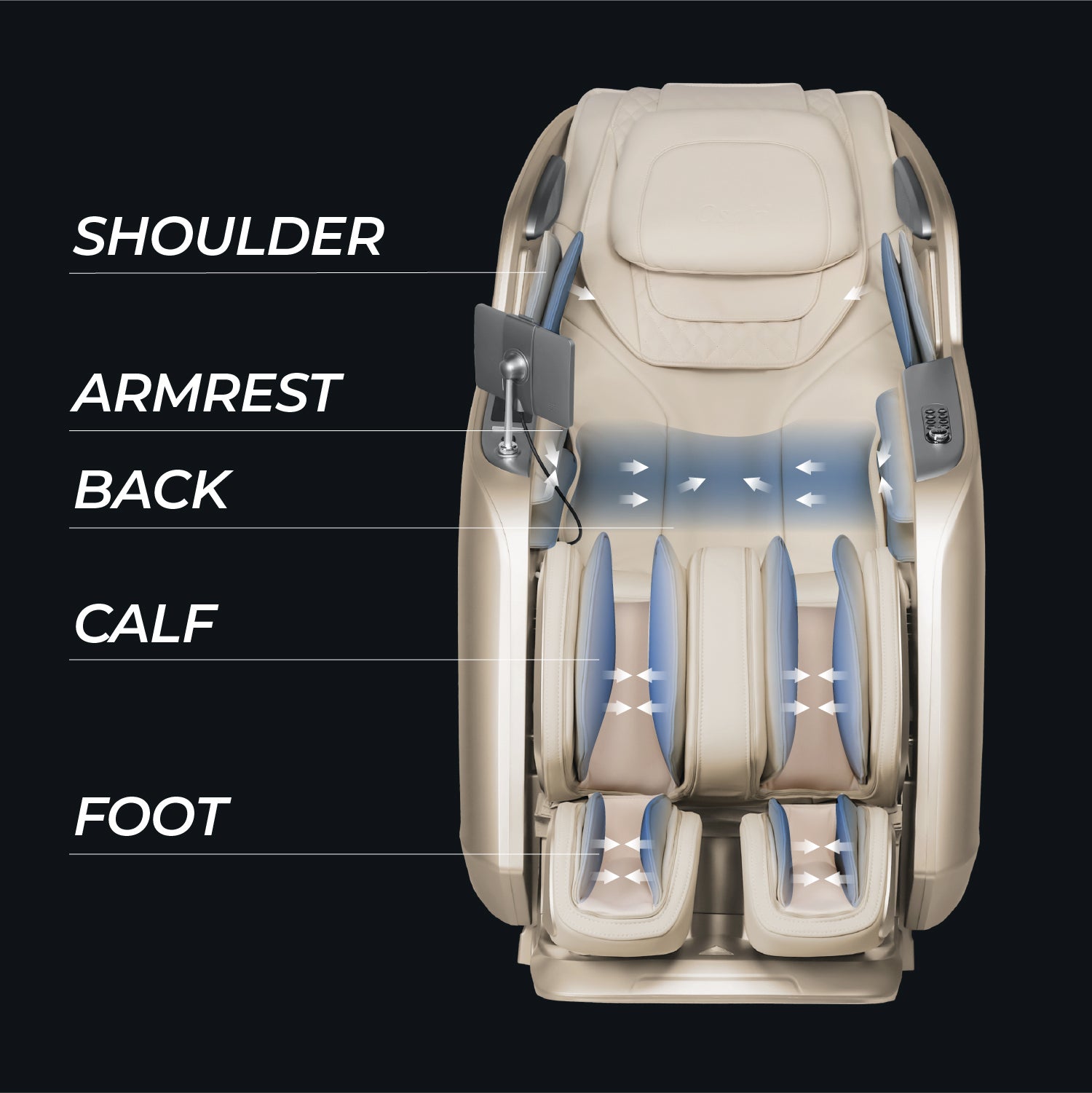 Be amazed by the all-new Osaki 4D Achilles Massage Chair, the first of its kind to independently stretch your ankles for a truly unique experience. Its advanced body scanning technology precisely adapts to your height and body contour, ensuring a personalized fit. Discover the most comprehensive leg and foot massage available in the industry.