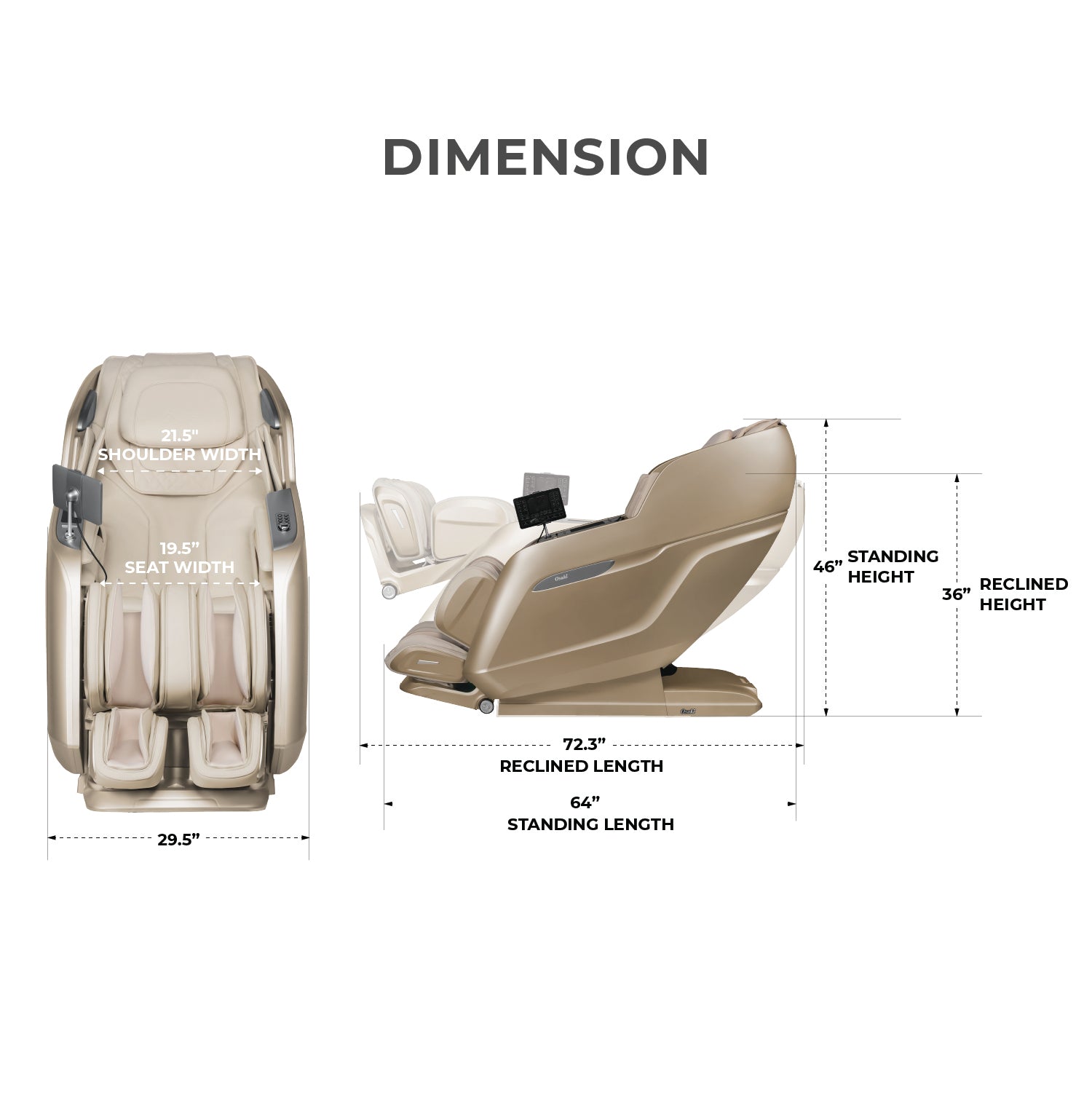 Reclined: 29.5"" x 72.3"" x 36.0""