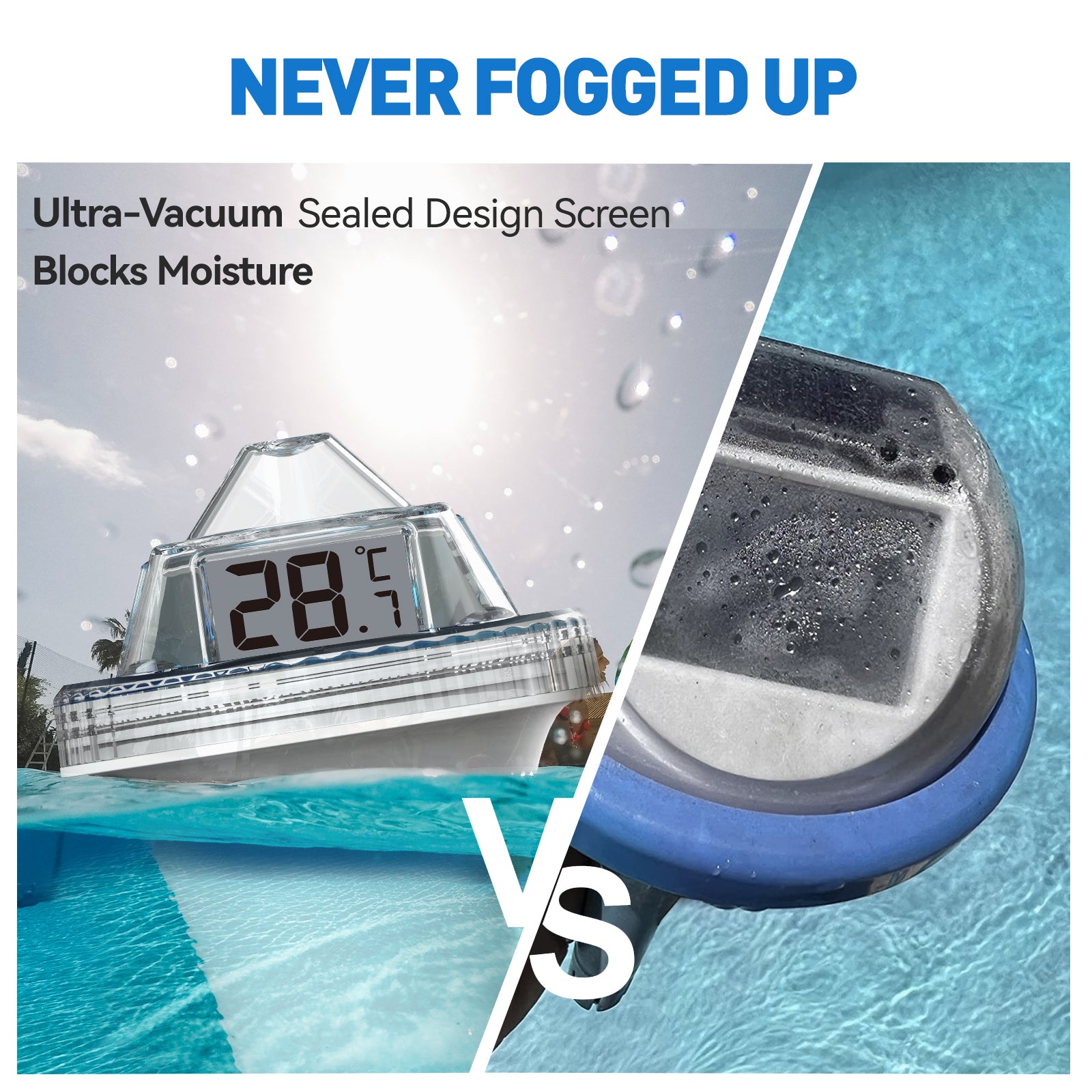 360° Visibility with Three LCD Screens: Enhance readability with the RAINPOINT pool thermometer's three LCD screens and transparent dome. This design allows you to effortlessly view temperature data from a 360-degree perspective, ensuring clear visibility and convenience from any angle.