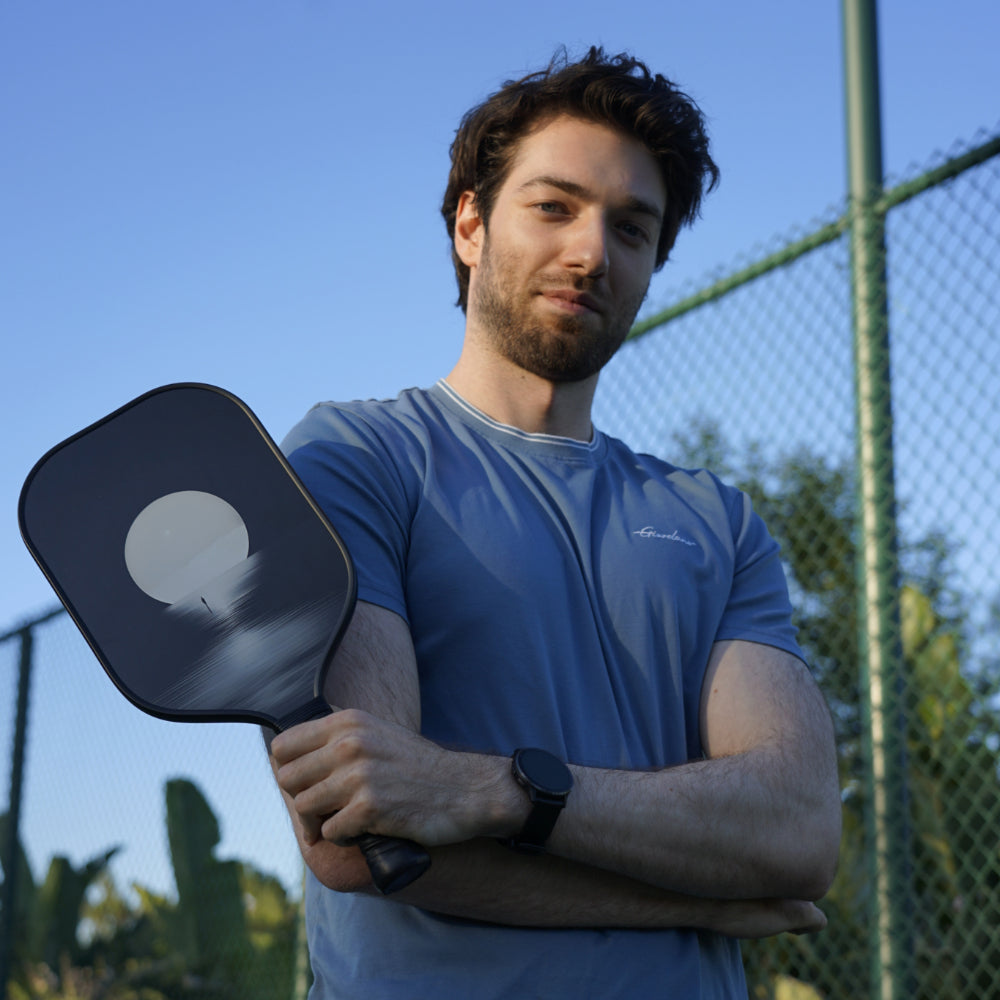 THE SELENE paddle, blending balanced force with tranquility, is ideal for competitive players seeking swift maneuverability, extra topspin, and increased reach.