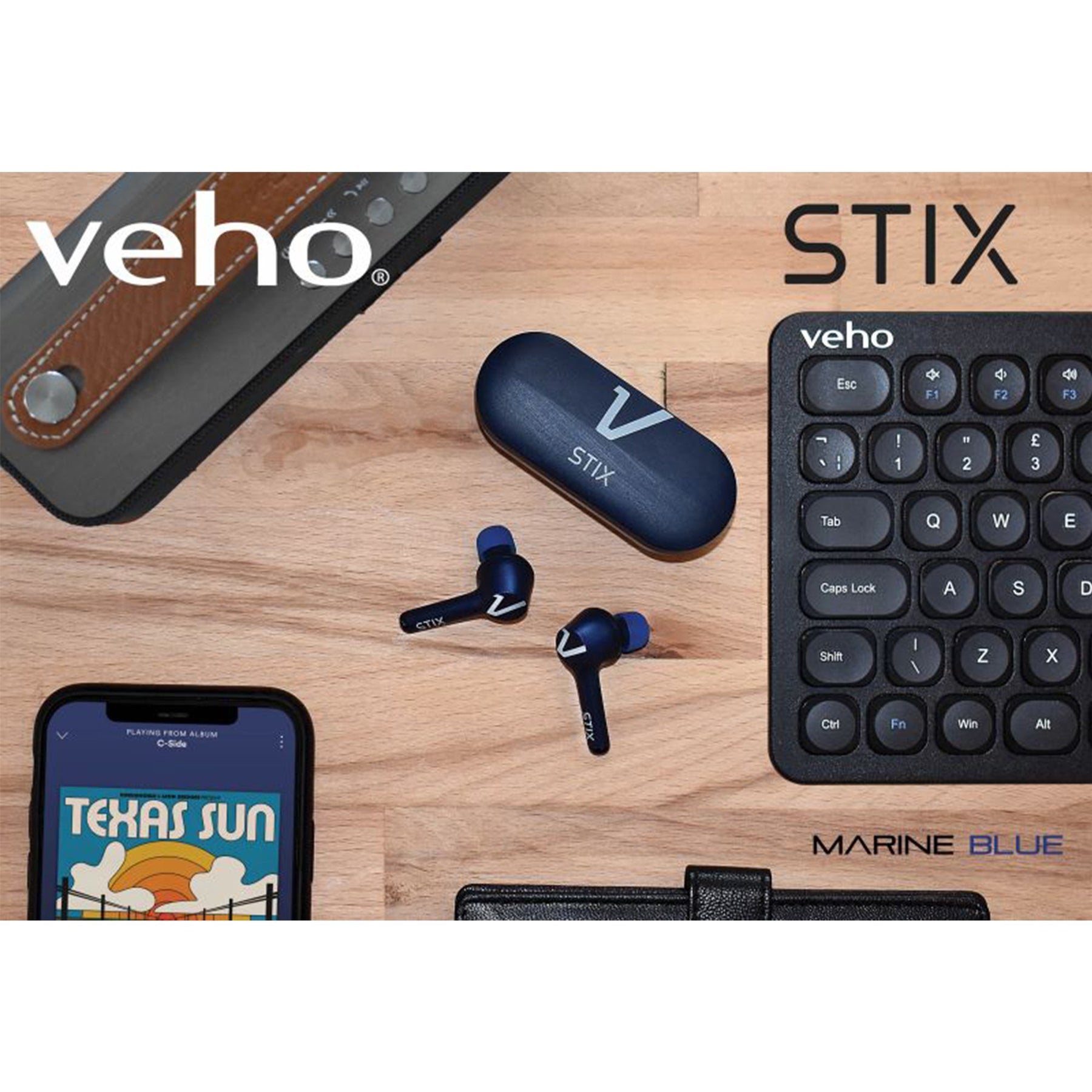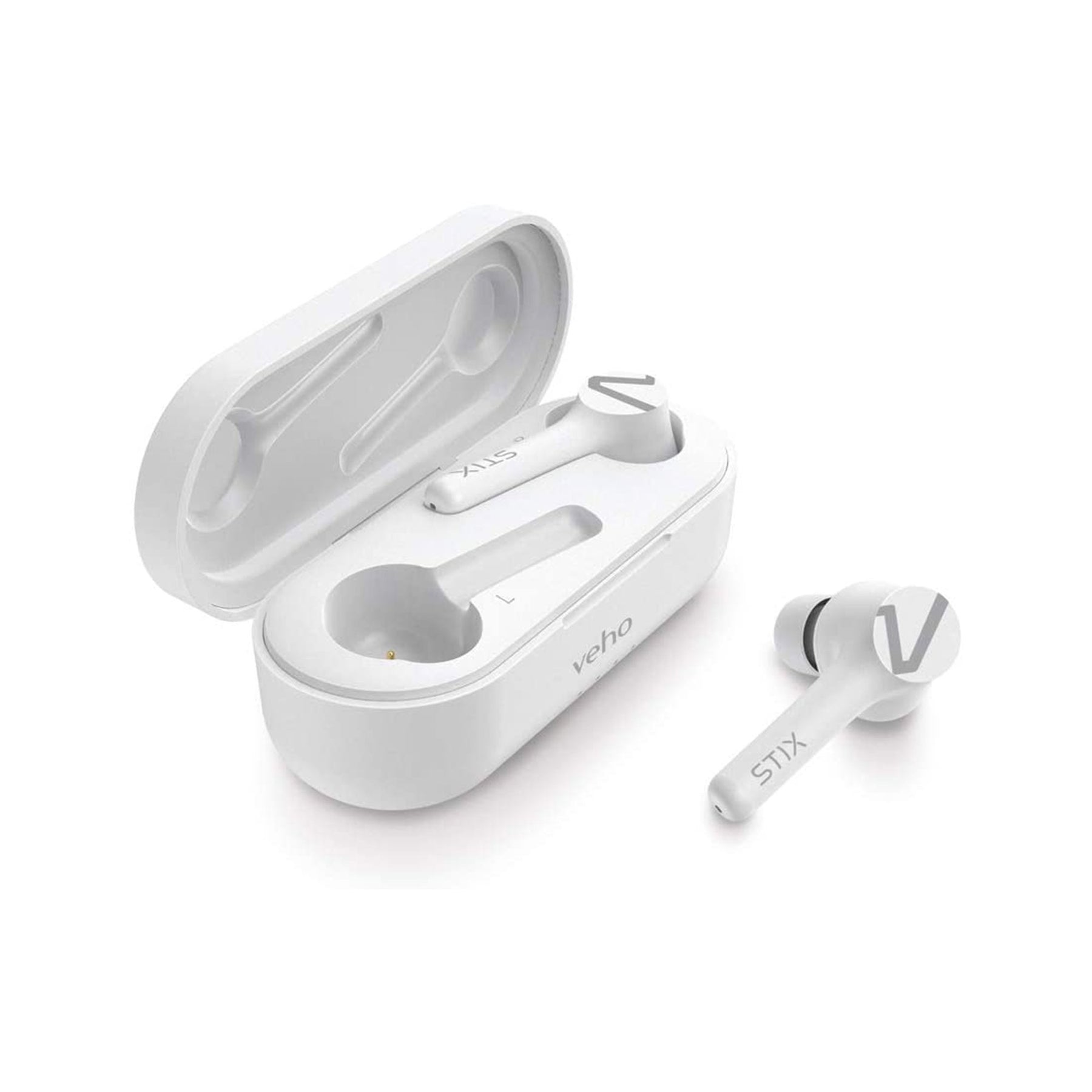 The Veho STIX true wireless Bluetooth earphones feature water resistant body, twin microphones, smart touch control, extended battery life and come complete with a rechargeable docking case, which allows multiple charges to extend the play time of your STIX.