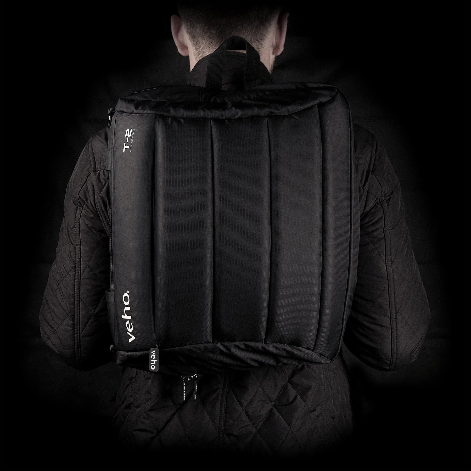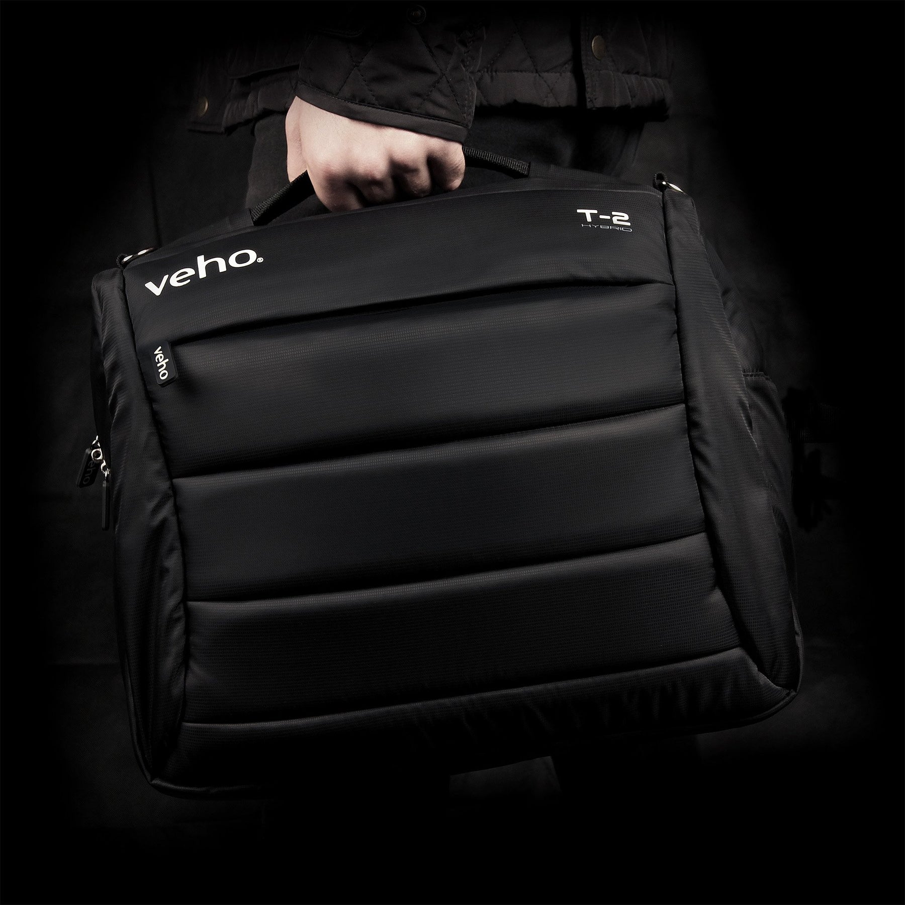 The versatile Veho T-2 hybrid laptop bag is designed with the unique option to either carry as a traditional laptop bag with a handle or shoulder strap as well as rucksack straps to convert the T-2 into a rucksack. The rucksack straps conveniently tuck away when the T-2 is be used as a conventional bag. The T-2 also has the conventional sleeve to slot over a carry on flight bag handles for easy transportation through airports.